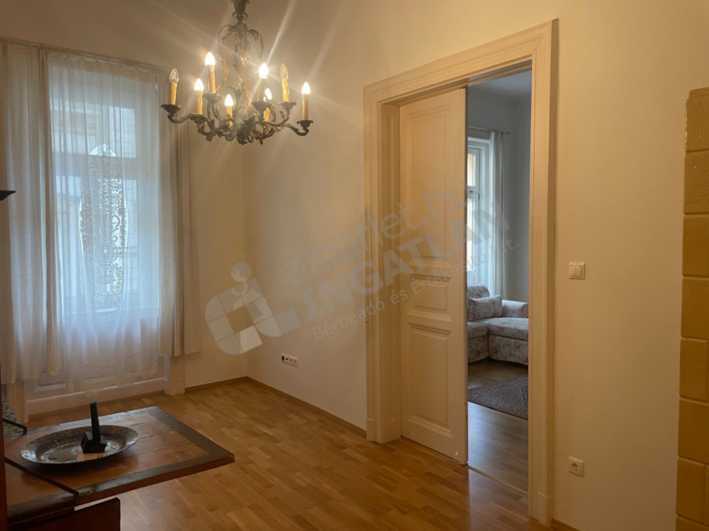 A kiadó lakás világos és tágas, rendezett liftes társasházban helyezkedik el a belváros szívében.