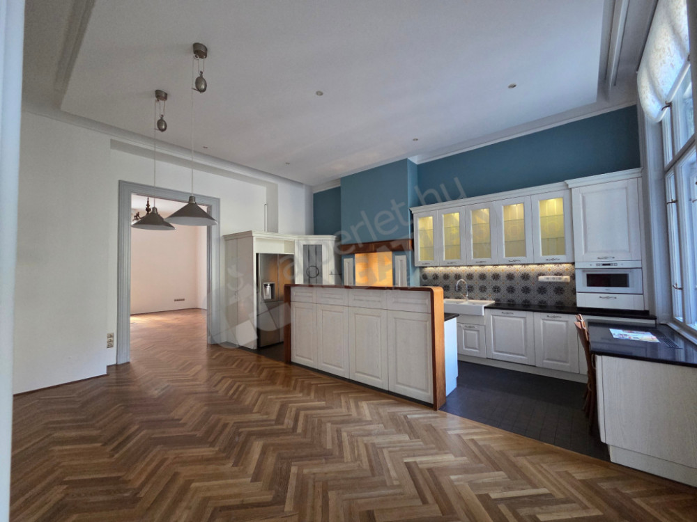 A belváros egyik legpatinásabb részén, a Szabadság tér közvetlen közelében kiadó egy **202 m²-es + 7 m² teraszos**, rendkívül világos és csendes, liftes házban található lakás. Az ingatlan kiváló választás **diplomata családok számára**, de adottságainak köszönhetően **irodának, rendelőnek vagy oktatási célra** is tökéletesen alkalmas.