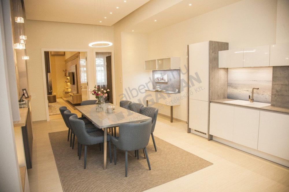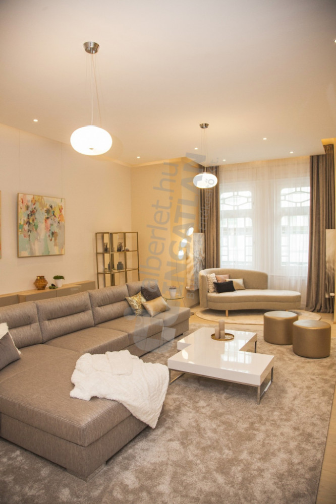 It is for rent in the heart of Budapest, a property in excellent condition, designed at a luxurious level, which immediately captivates the interested party with its clean elegance and excellent features. The spacious, bright spaces of the apartment are harmoniously connected to each other: the representative living room, the two comfortably sized bedrooms and the separate, modern kitchen with dining area all serve the high level of comfort. Every detail of the interior design is thoughtful, with the use of quality materials and a timeless design.