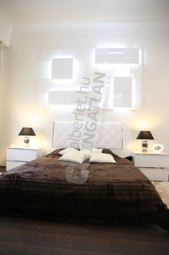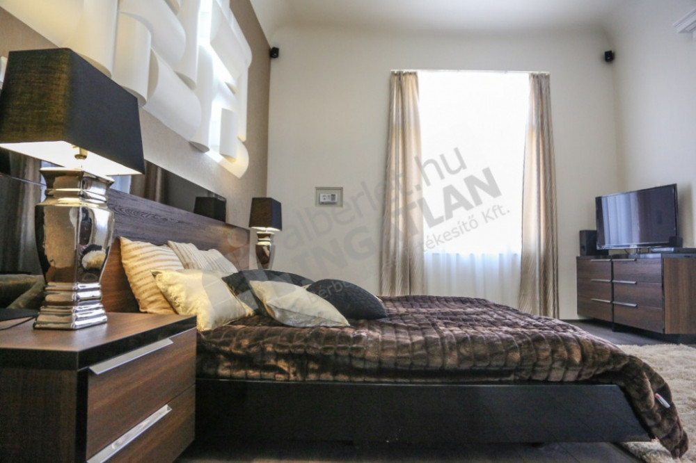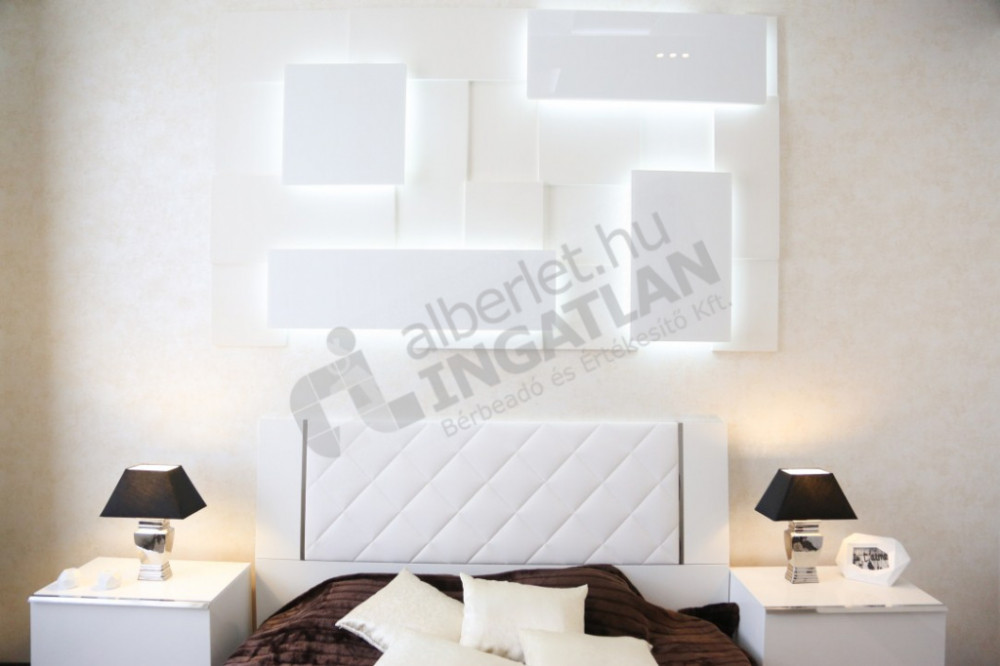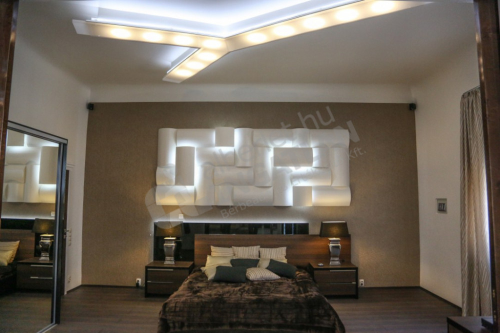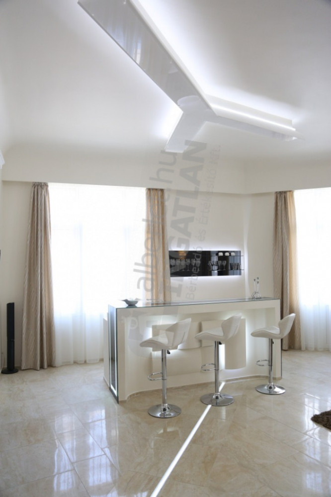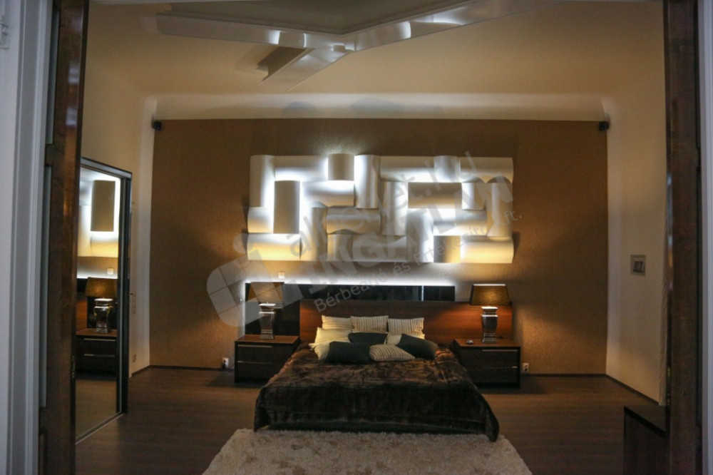 Hangszigetelés, Bárpult, Led világítás, 3D-s egyedi térplasztikák, Helyiségenként hőfokszabályozás, Marburg tapéták, Márvány kád, 3D Televiziók, Projektor, Motoros vászon.