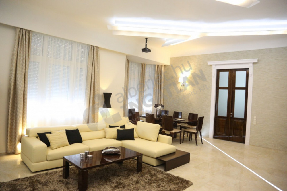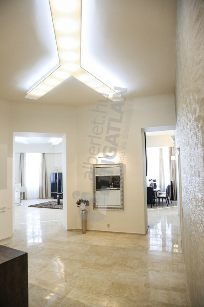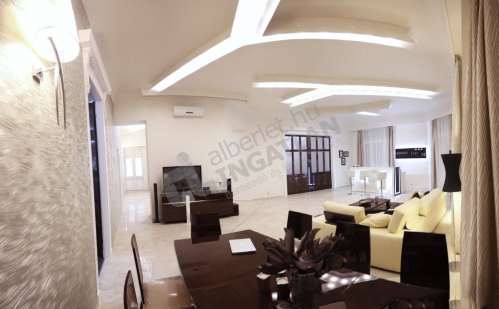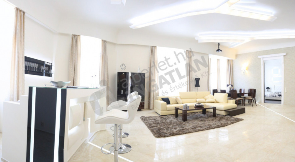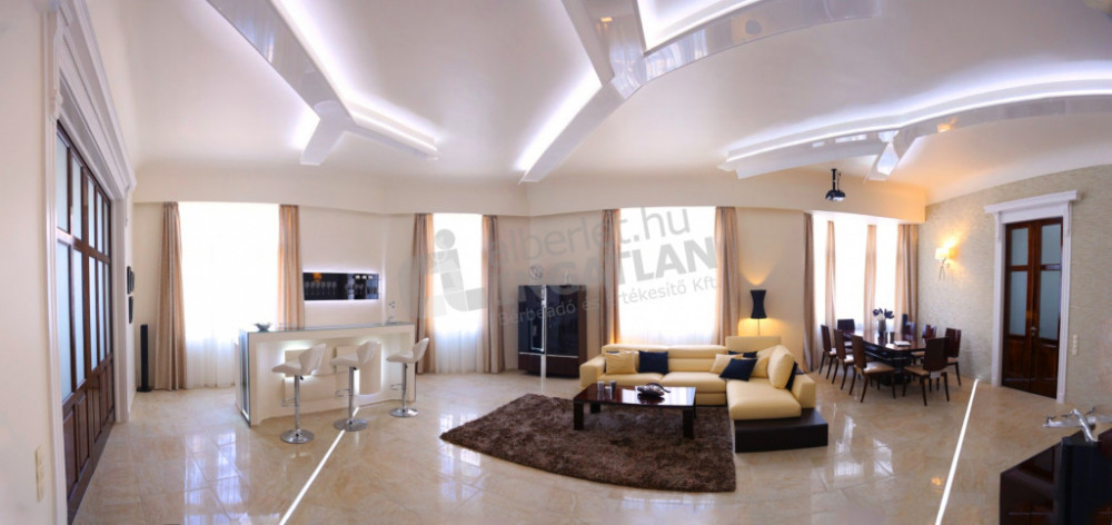 Az átalakítás során 73m2-es nappali, három hálószoba, három fürdőszoba, konyha és bárpult kapott helyet ebben a minden igényt kielégítő igazi nagypolgári lakásban. Minőségi anyaghasználata gondoskodik a presztízs lakás hangulatáról, mint például az olasz-spanyol burkolatok Grespana, Gardenia, Duravit, Grohe szaniterek, és Alf Italia fa intarziás bútorok, Marburg tapéták.