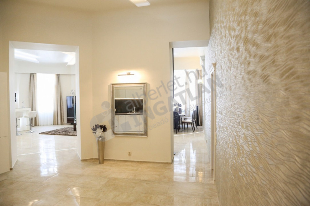 A Régiposta utcában található, ez a magas emeleti 170m2-es, erkélyes modern luxus lakás. Az ingatlan a Váci utca mellett helyezkedik el, ablakai a Szervita térre néznek. Egyedi hangulat jellemzi az ide terveztetett mennyezeti lámpák, 3D-s tér plasztikáknak köszönhetően. Törekedtünk hogy minden apró részletében át gondolt és kidolgozott lakást építsünk.