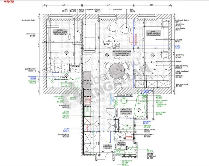 Hőkomfort: Padlófűtés az egész lakásban és beépített klímaberendezés.