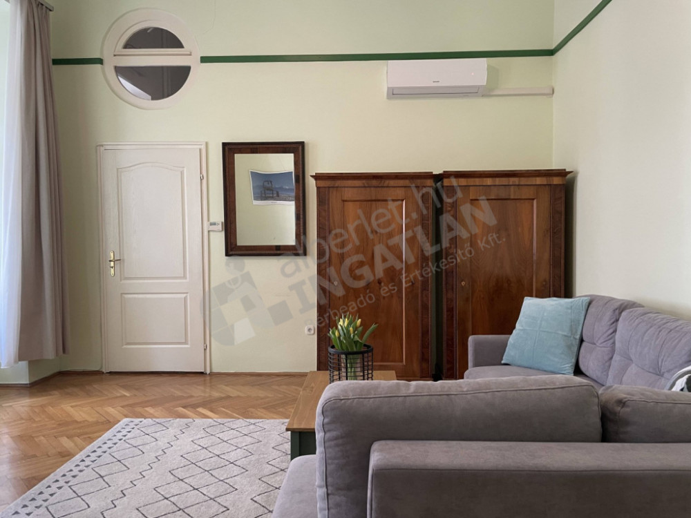 A Szent István Bazilikát és a Széchényi teret összekötő, kiváló éttermekben bővelkedő SÉTÁLÓUTCÁBAN kiadó nagy belmagasságú TELJESEN FELSZERELT, bútorozott és gépesített lakás,