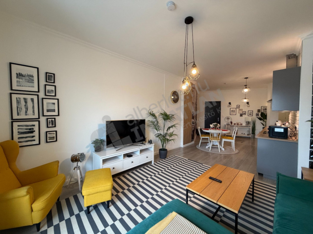 A lakás elrendezése ideális: tágas, amerikai konyhás nappalival, két külön nyíló hálószobával, egy fürdőszobával és egy külön vendég WC-vel, előszobával, valamint egy hangulatos erkéllyel rendelkezik, amely kellemes pihenőteret biztosít a belváros felett. A teljesen gépesített konyha és a légkondicionált kialakítás minden évszakban kényelmes, komfortos otthont biztosít. A magas emeletnek köszönhetően a lakás kifejezetten csendes és napfényes, a társasház rendezett, folyamatosan karbantartott.
