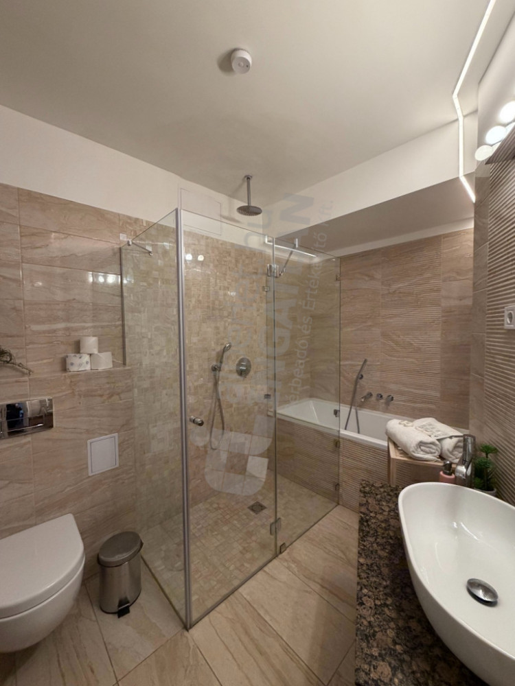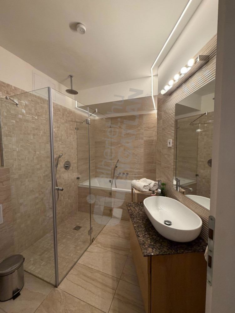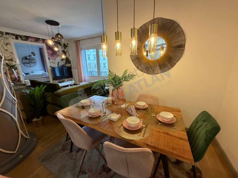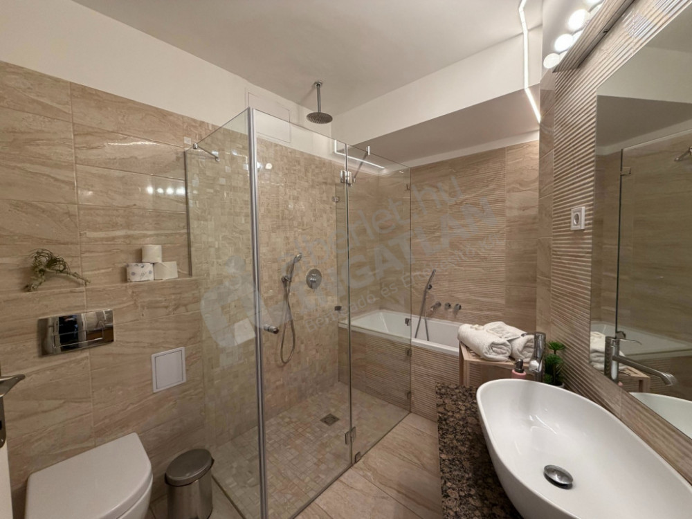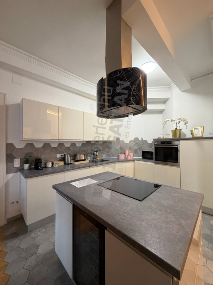 A lakás kiváló elosztású: tágas amerikai konyhás nappalival, három külön nyíló hálószobával és három fürdőszobával rendelkezik, így ideális választás lehet családok vagy több lakótárs számára is. A konyha teljesen gépesített, az ingatlan klimatizált, így a mindennapi komfort garantált.