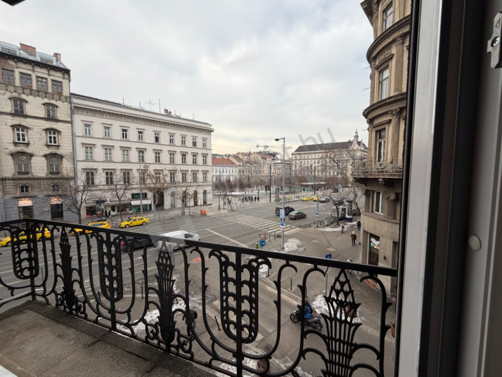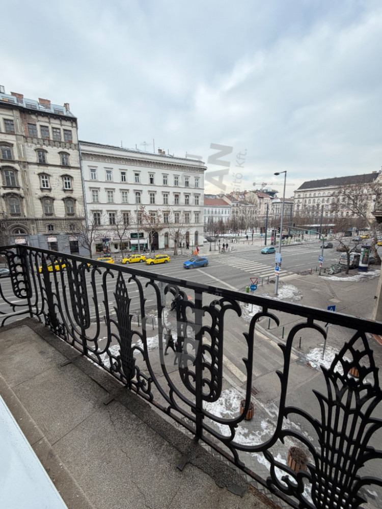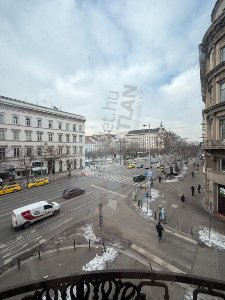 Kiadó a Bajcsy-Zsilinszky út egyik liftes társasházának második emeletén egy 115 m²-es, világos, erkélyes saroklakás, amelynek ablakai és erkélye a Podmaniczky Frigyes tér felé néznek, kellemes kilátást biztosítva.