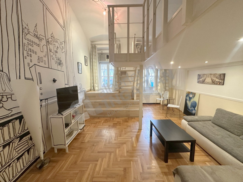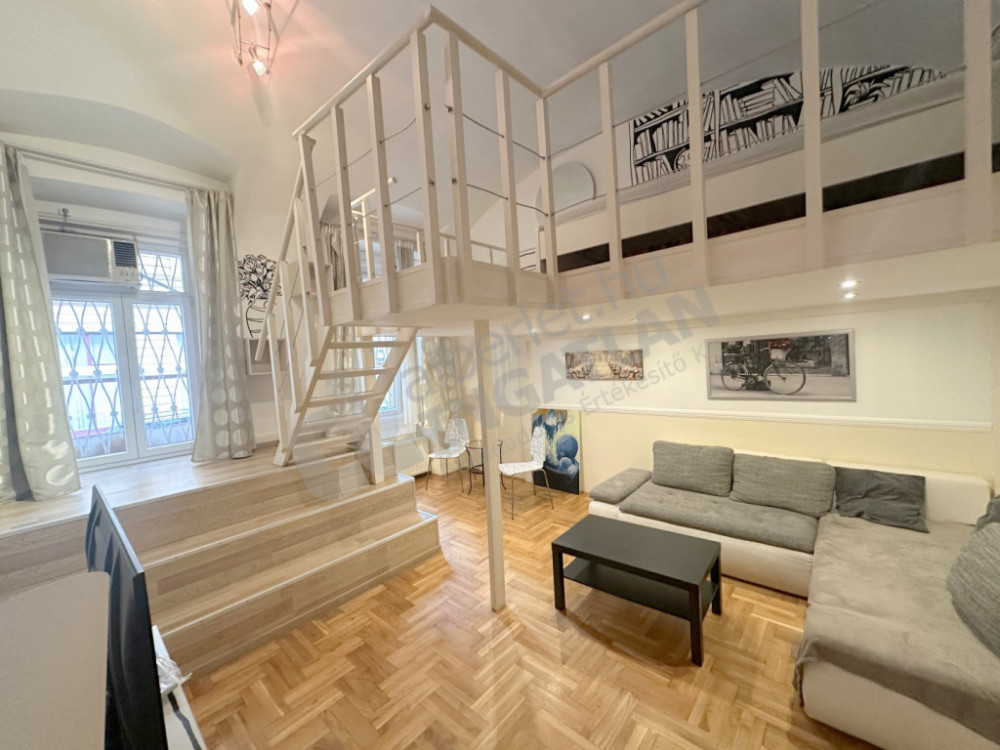 Jókai utca közepén, Oktogon és Nyugati között félúton kiadó egy 46m2 alapterületű, szépen felújított, galériás lakás.