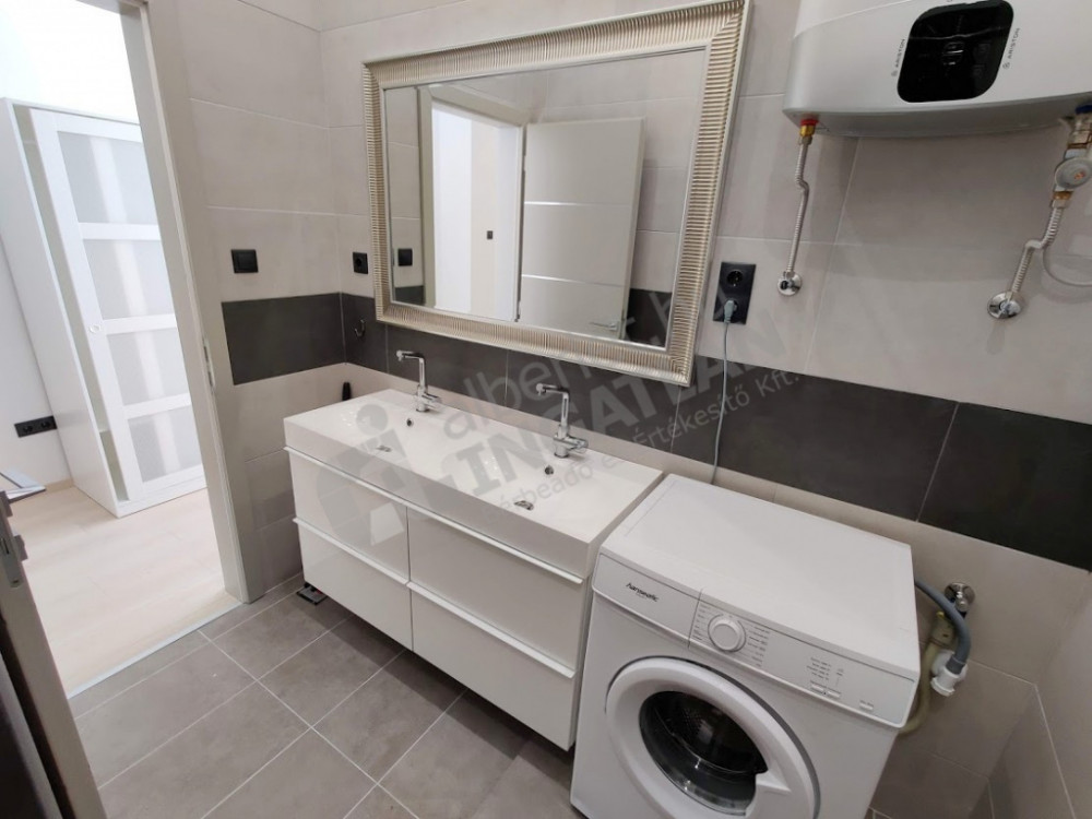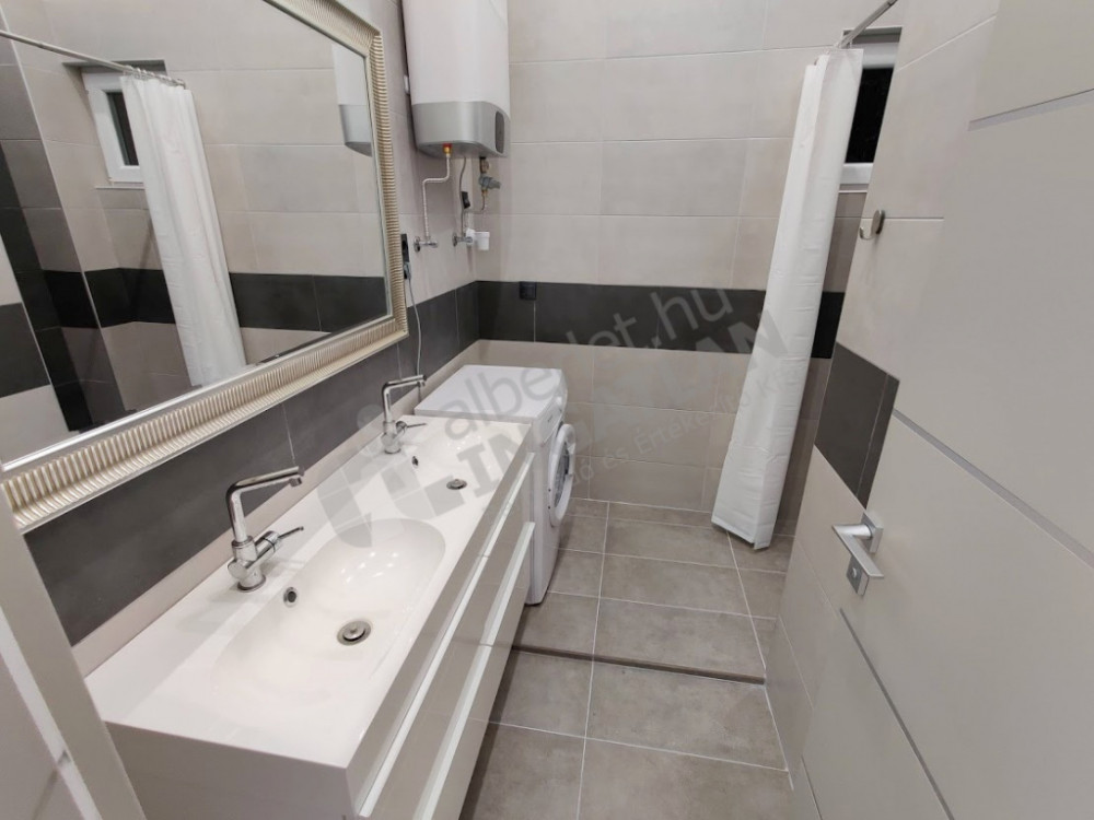 A lakás bútorozott, gépesített, duplakomfortos, 2 fürdőszobával rendelkezik. Külön WC is van