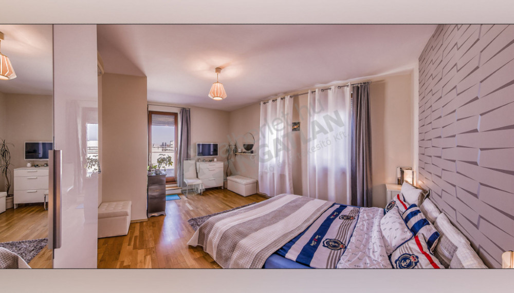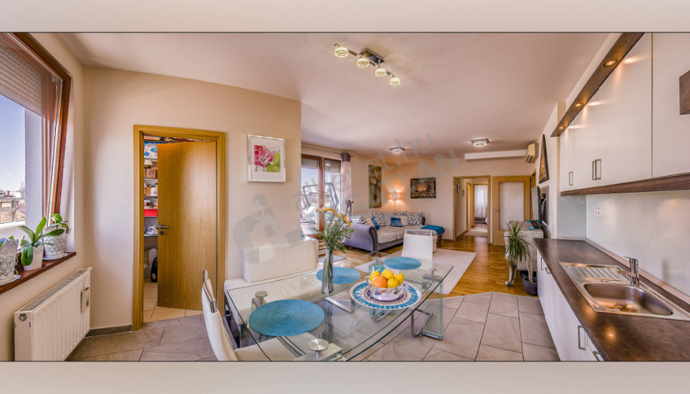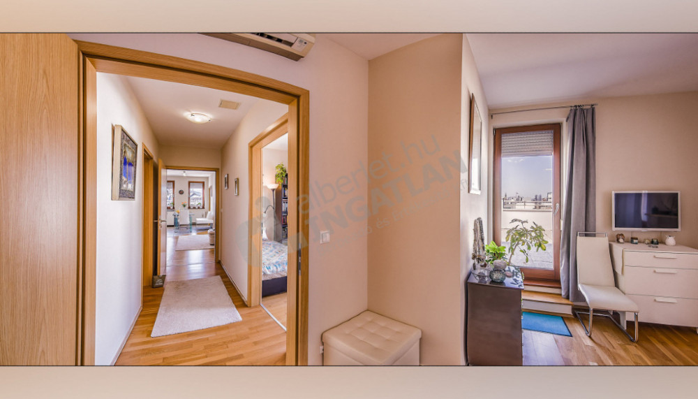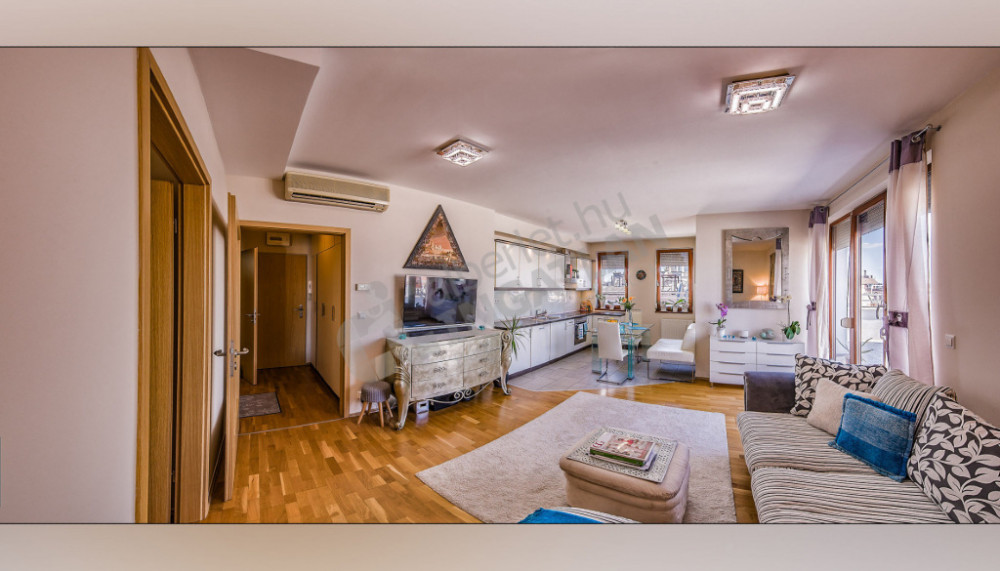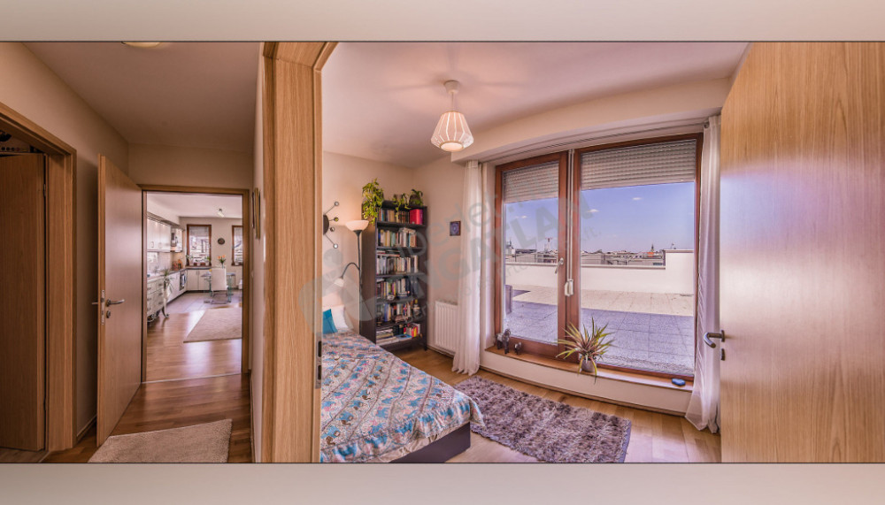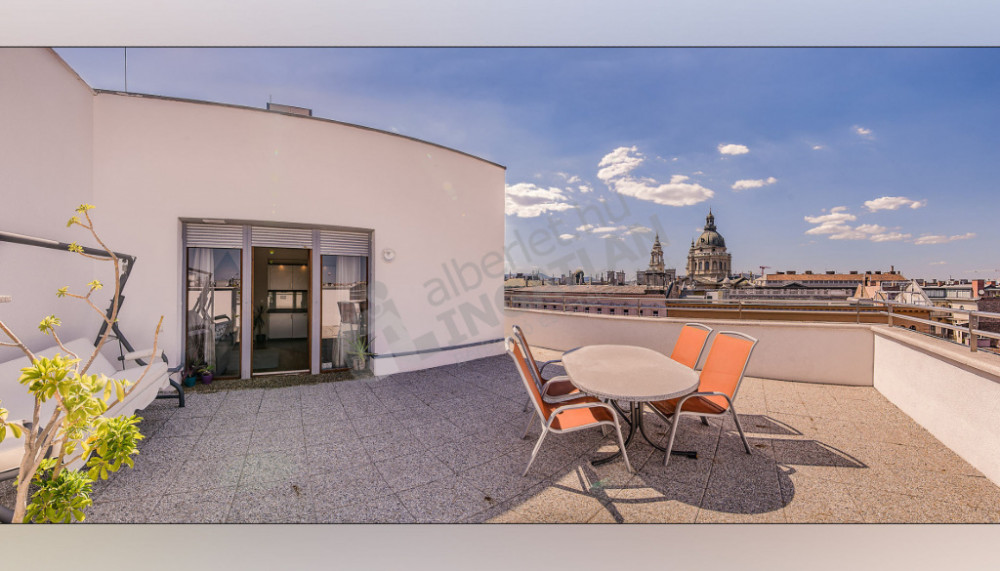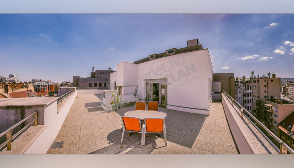 Kiadó a VI. kerületben a Király utcán egy csodálatos panorámával rendelkező, 2 szobás 72 nm-es penthouse lakás hatalmas terasszal.