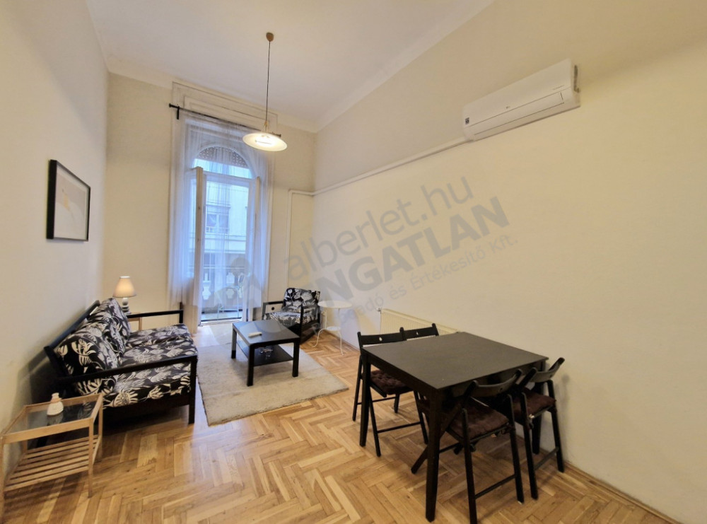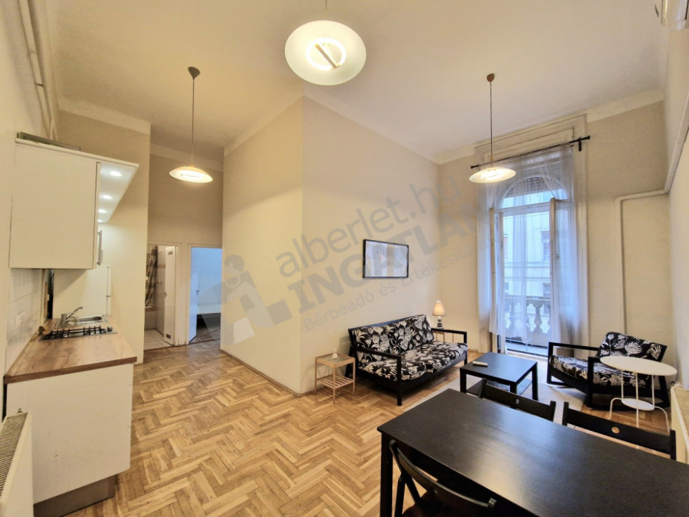 For rent at the Arany János Street metro station, in Nagymező Street, a Furnished and Mechanized, 67 sqm, 3-room apartment with balcony!