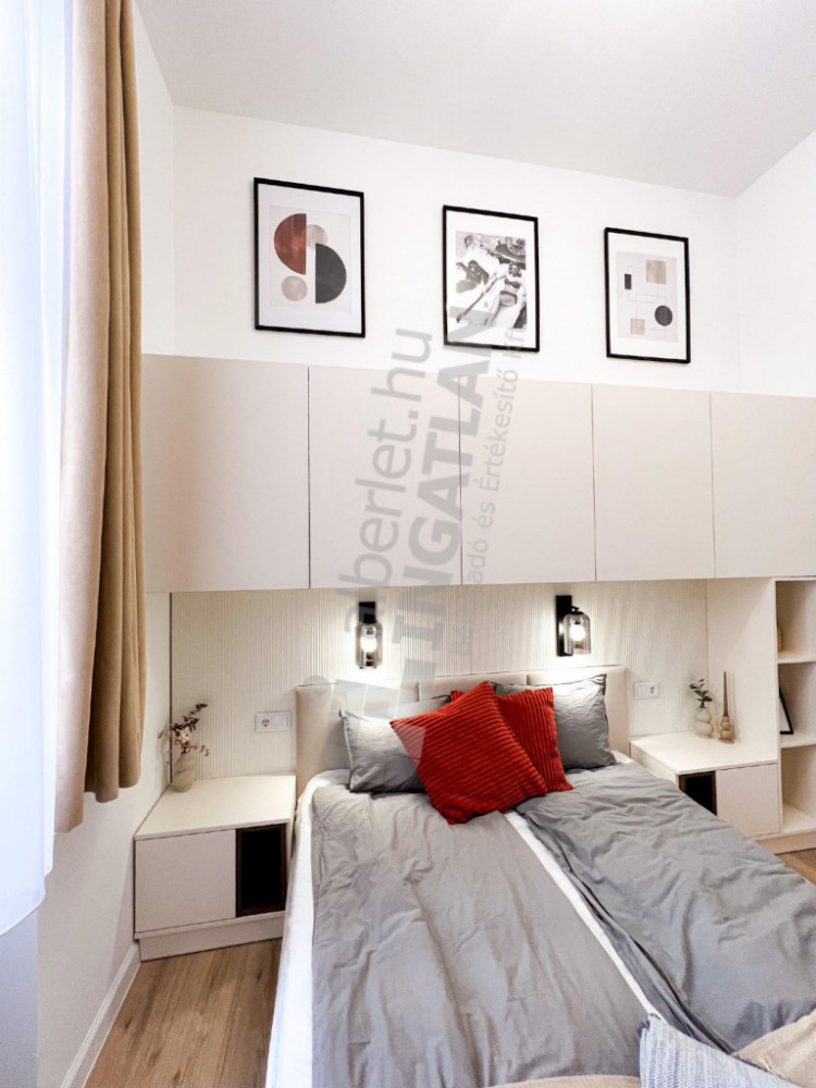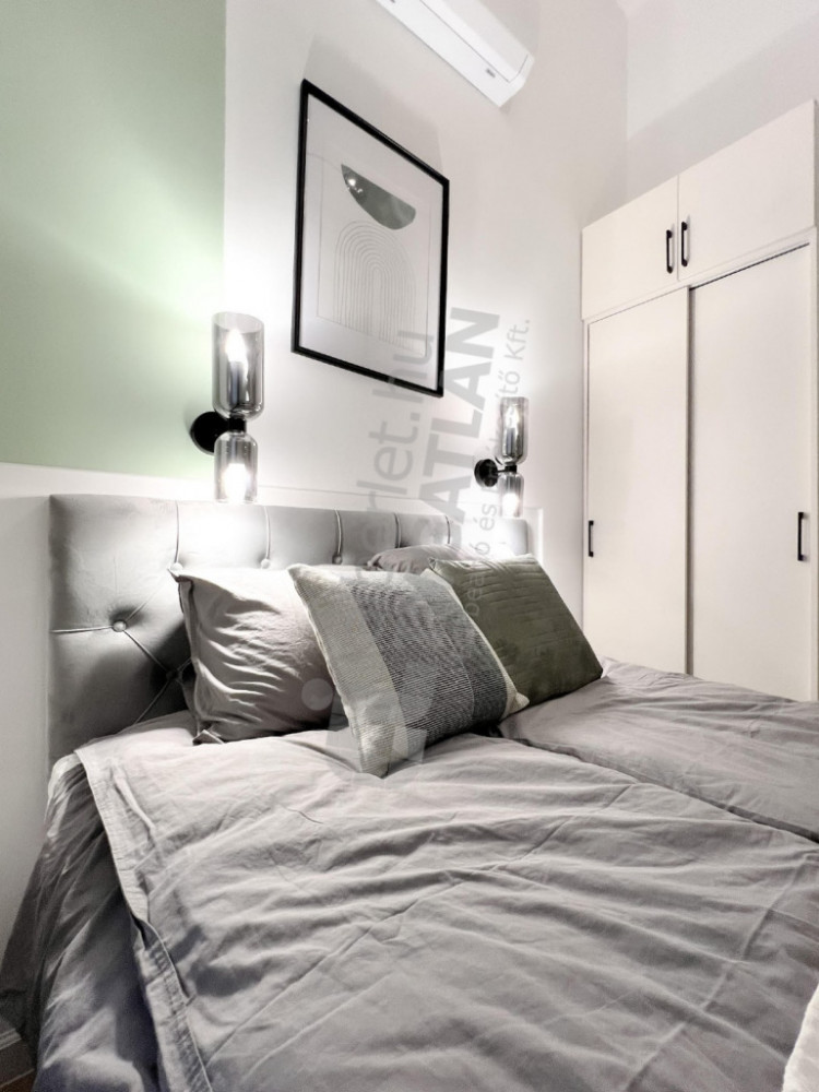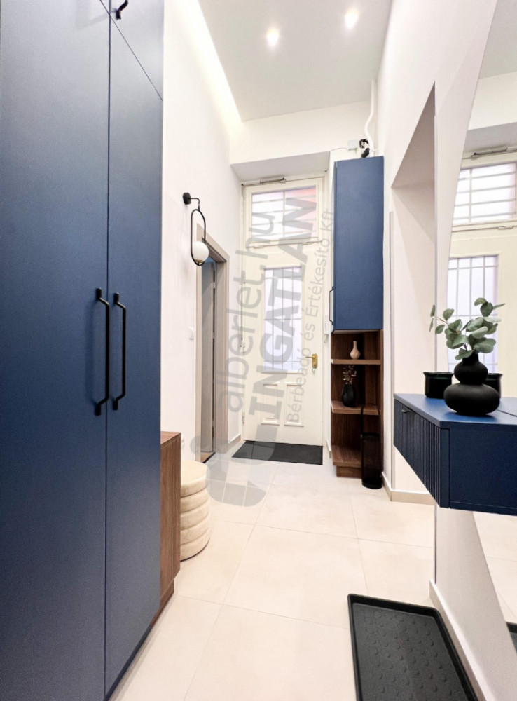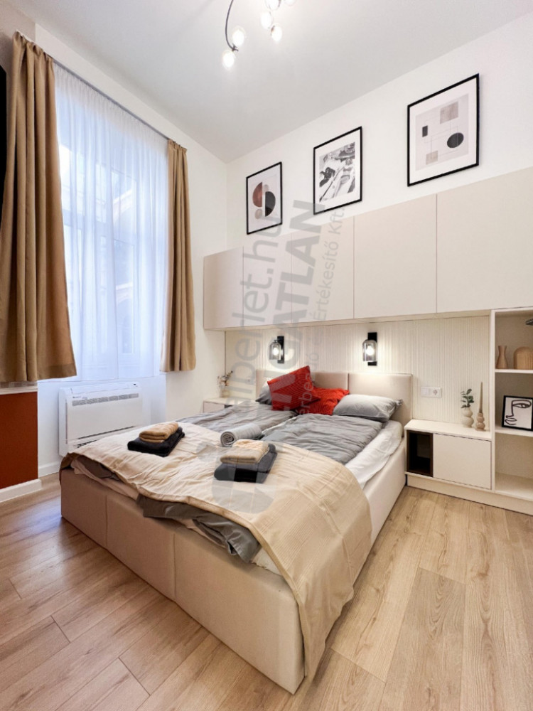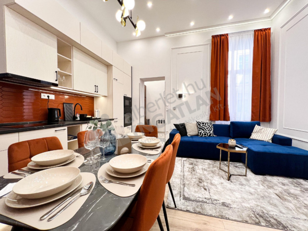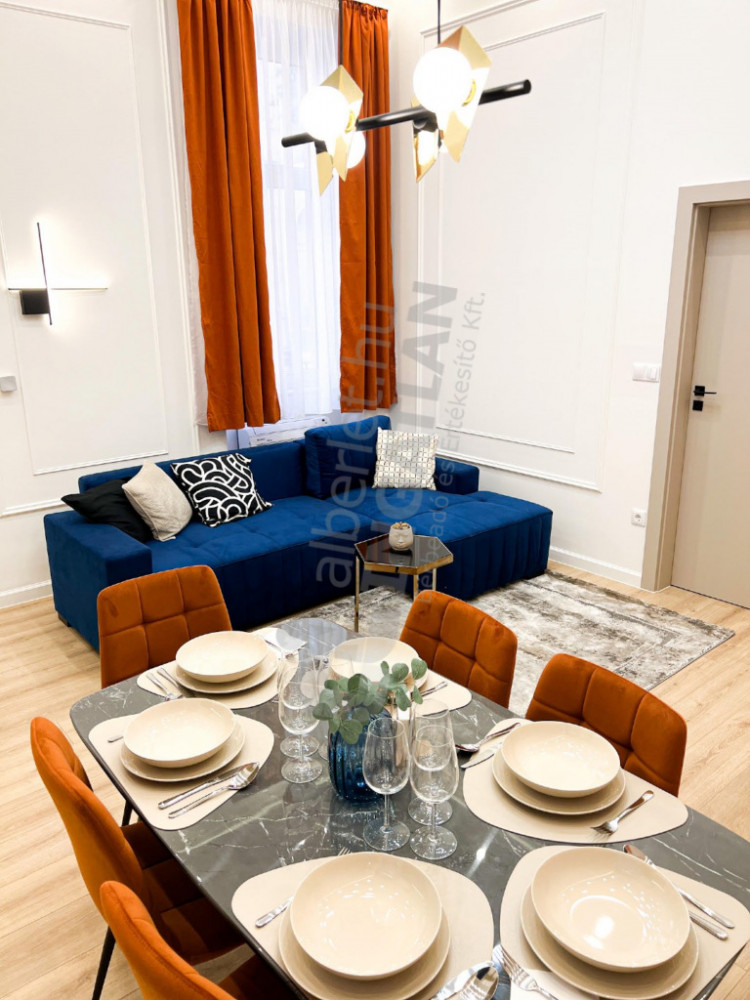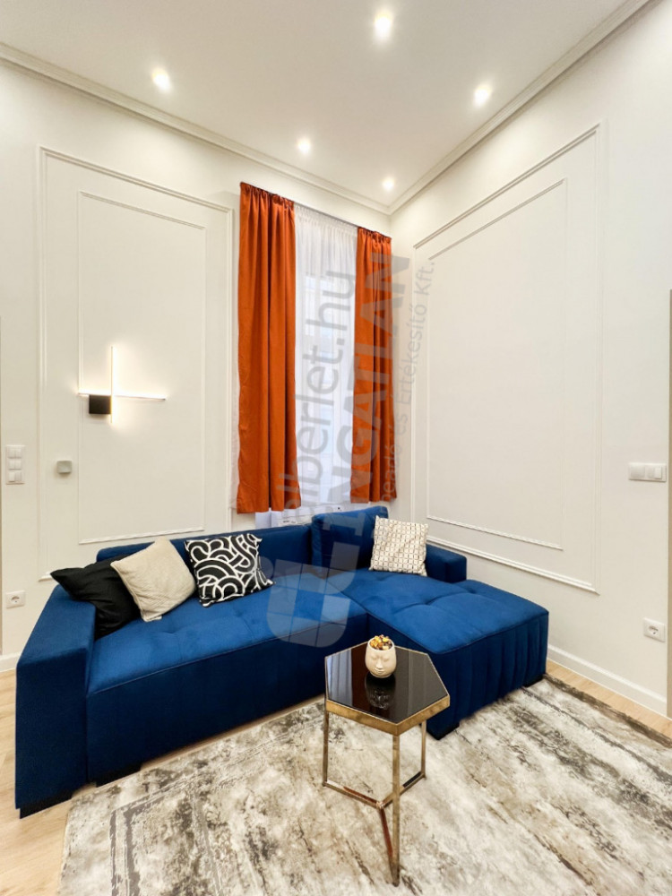 A newly renovated, first-floor apartment designed by an interior designer is for rent in the inner part of Terézváros. The property has a quiet, courtyard-oriented living room with an American kitchen and three separate bedrooms. Its design is made really comfortable by two bathrooms and a separate toilet. The apartment is nicely and fully furnished, in a condition that can be moved in immediately. The 380 cm ceiling height provides an extremely spacious, elegant sense of space.