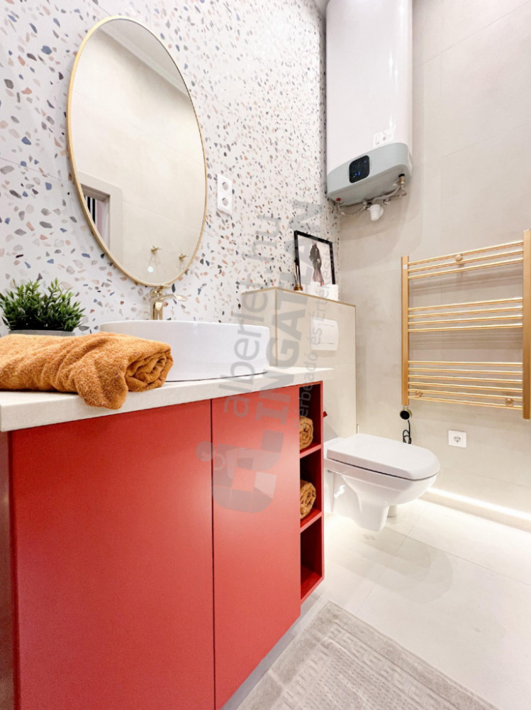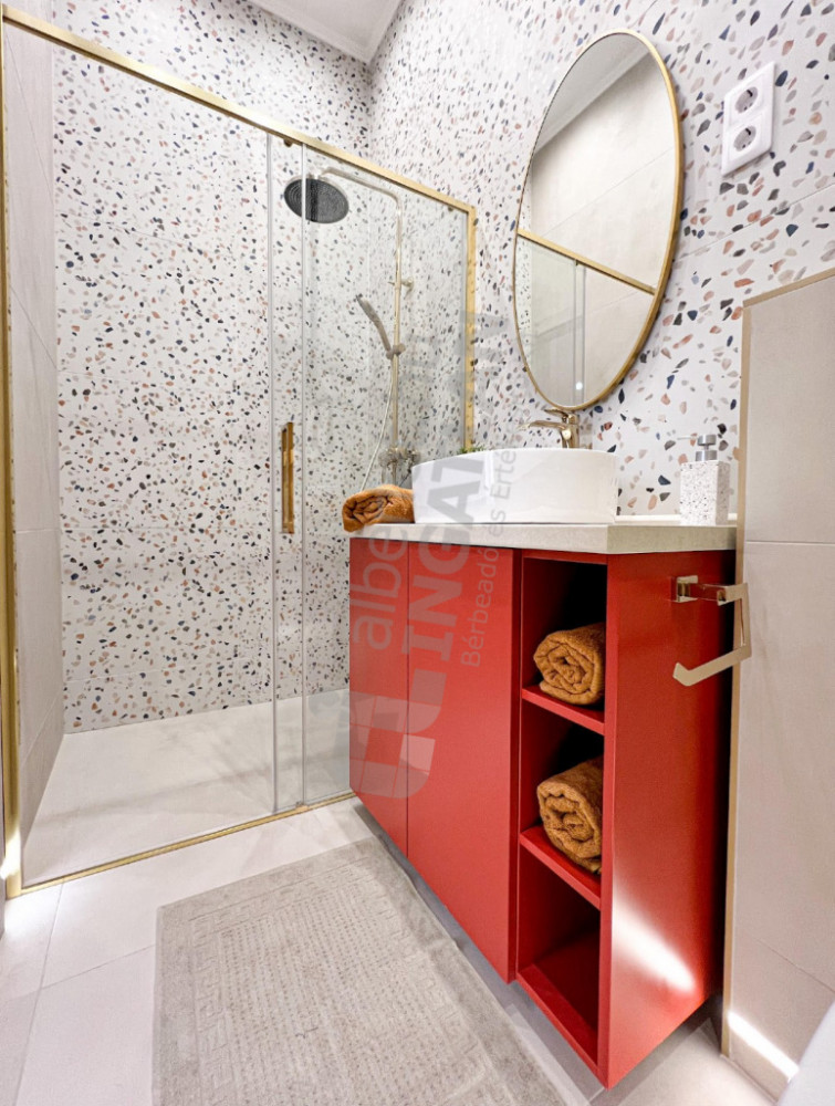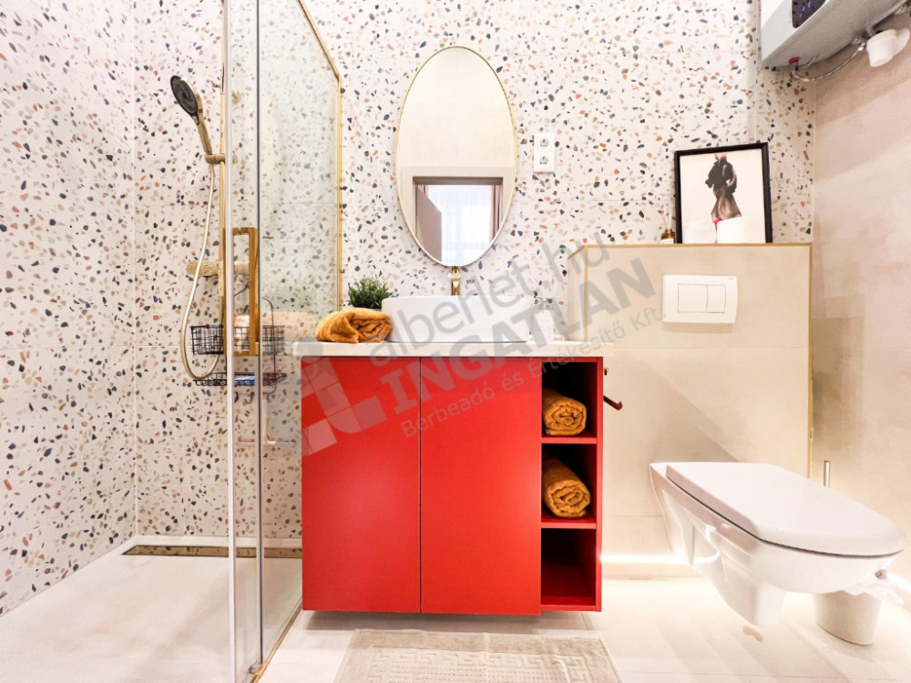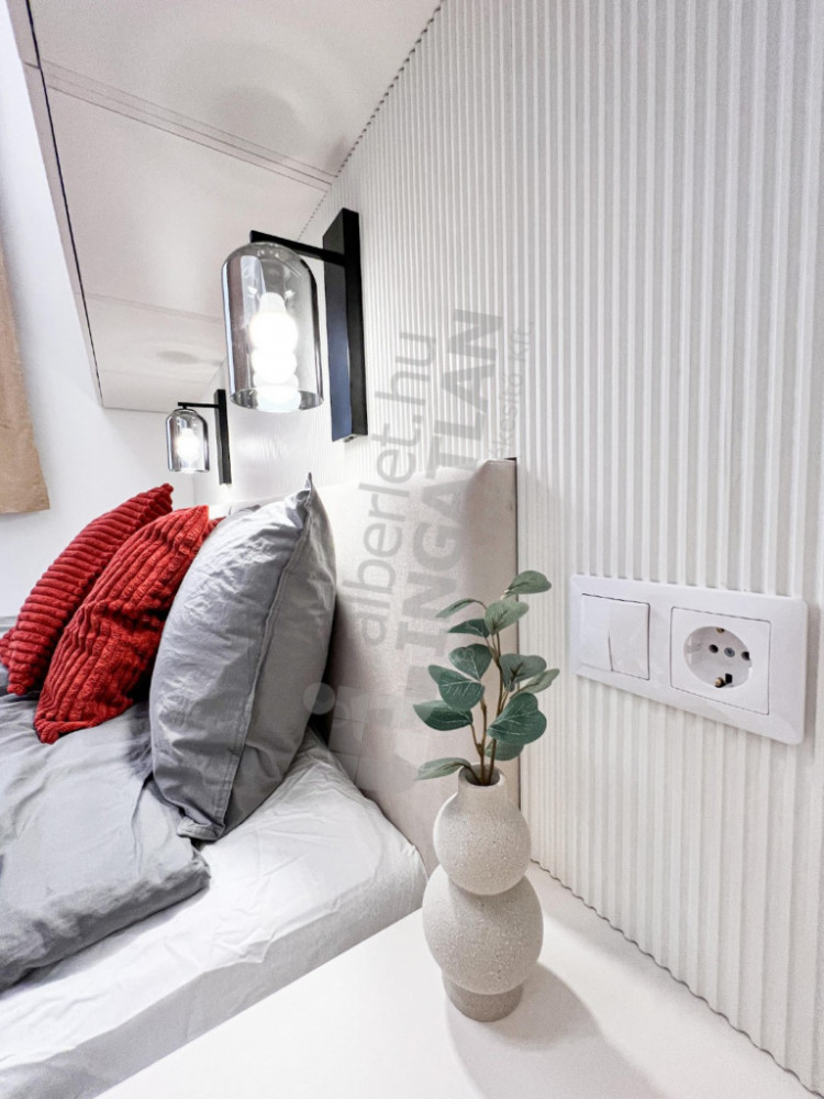 Cooling and heating are solved with a modern Gree air conditioning system, with a total of four devices controlled from Wi-Fi and wall panels, which can be controlled separately for each room. The bathrooms are equipped with radiators with towel dryers for a comfortable feeling of warmth. The apartment is equipped with a security front door, its kitchen is fully mechanized, and T-Com internet is part of the rent.