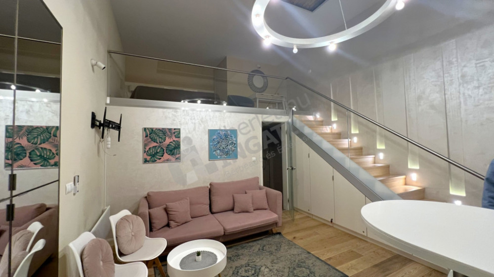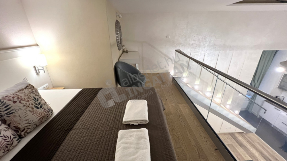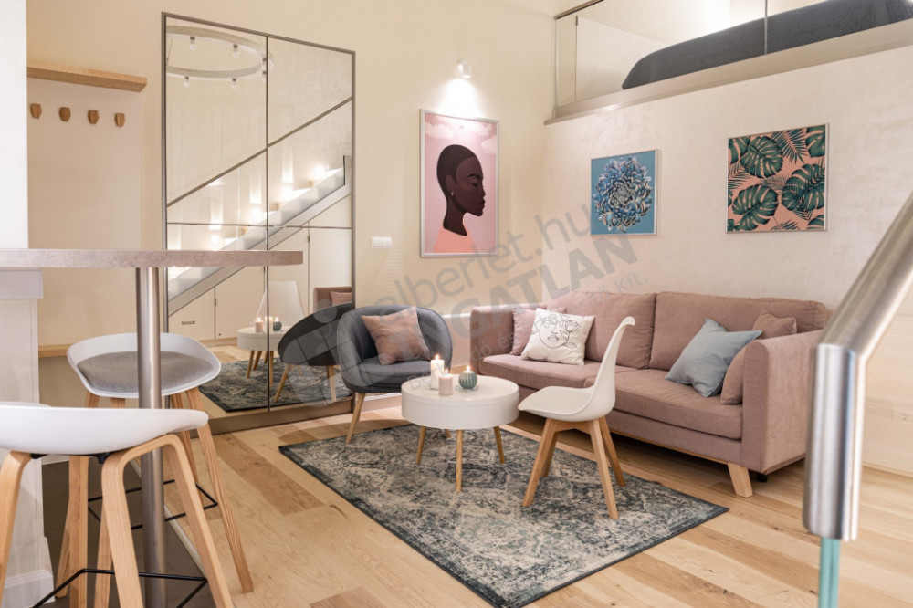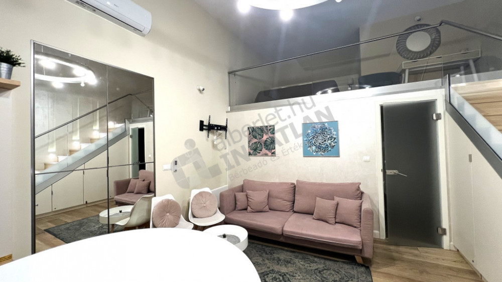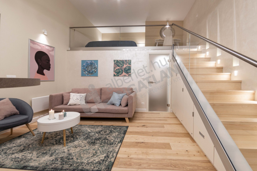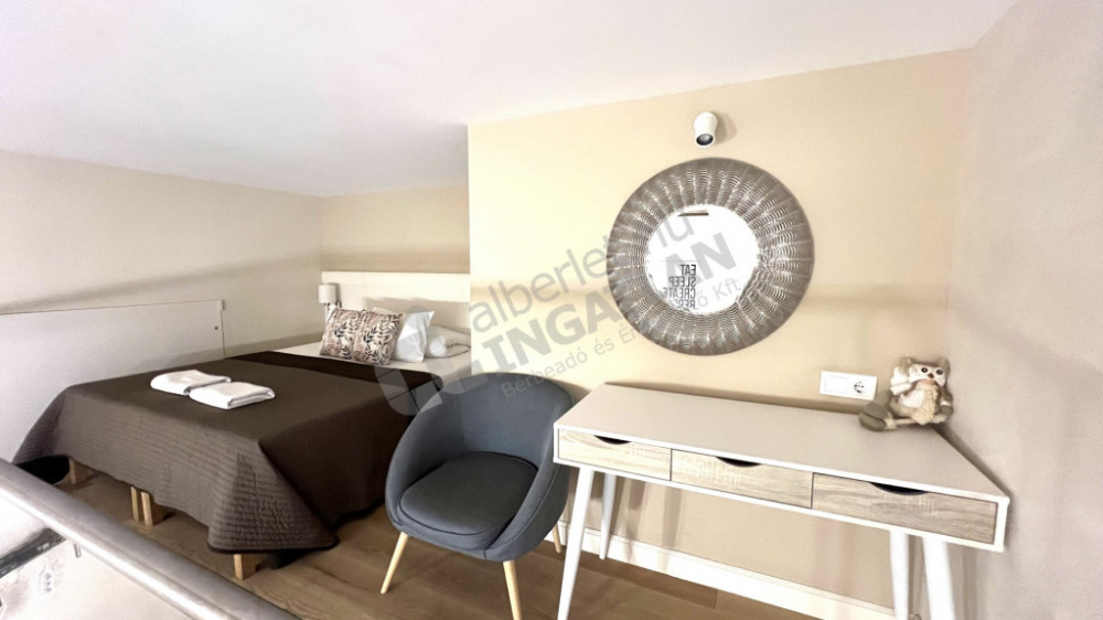 1 szoba, és a nagy belmagasságnak köszönhetően ÁLLÓ GALÉRIÁZOTT.