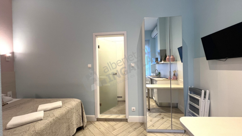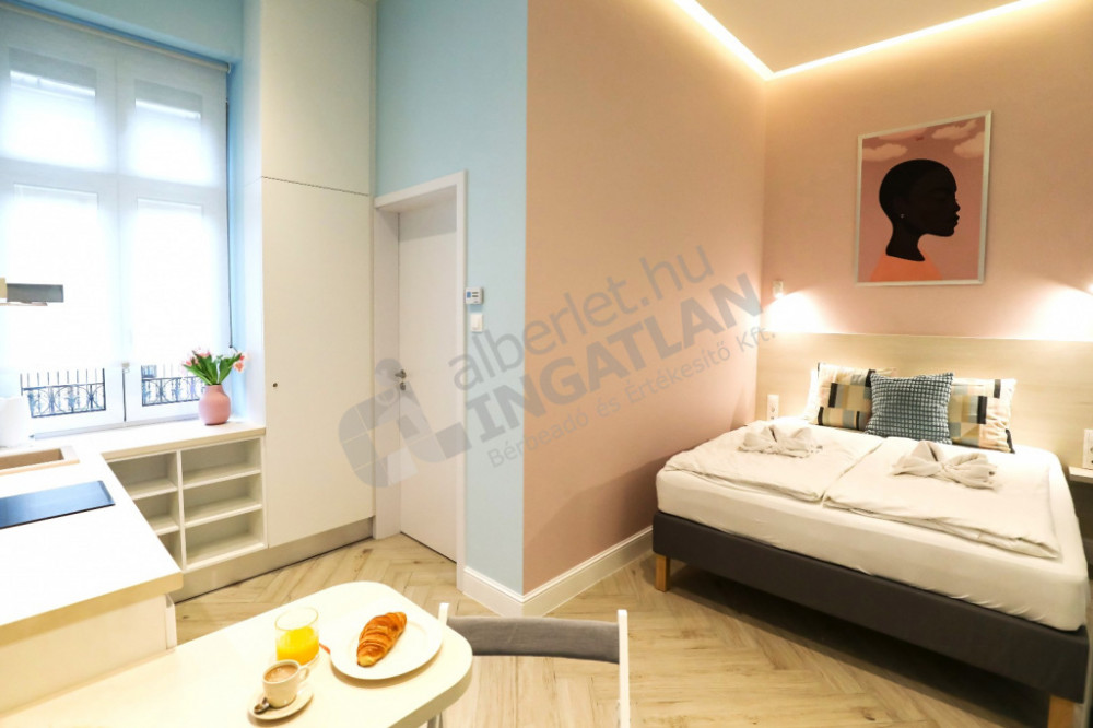 Kiadó az VI. kerületben, az Ó utcában, azonnal költözhető, 3. emeleti, 40 m2-es, 2 külön nyíló szobás, külön apartmanként is működő lakás.