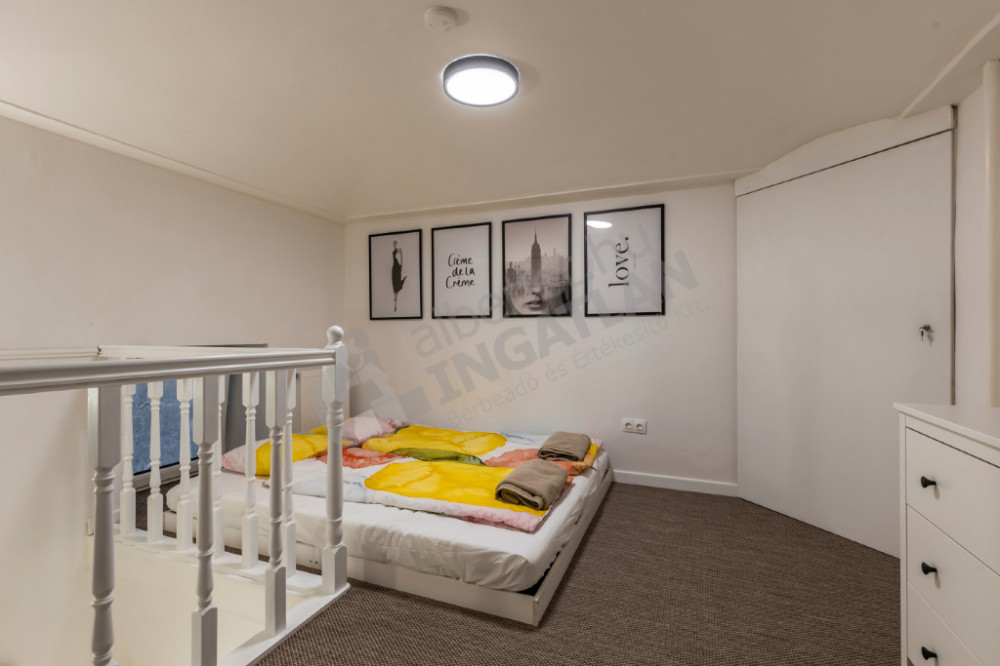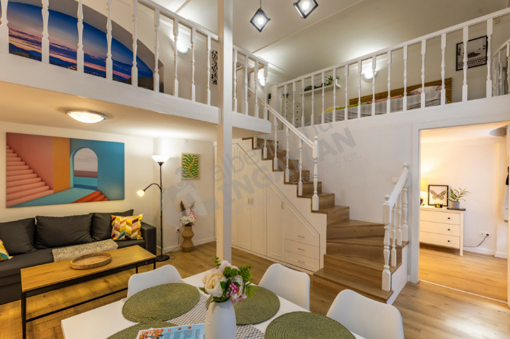 A lakás praktikus elrendezésű, tágas nappalival, galériás hálószobával, valamint külön WC-vel és fürdőszobával rendelkezik, így kényelmes életteret biztosít.