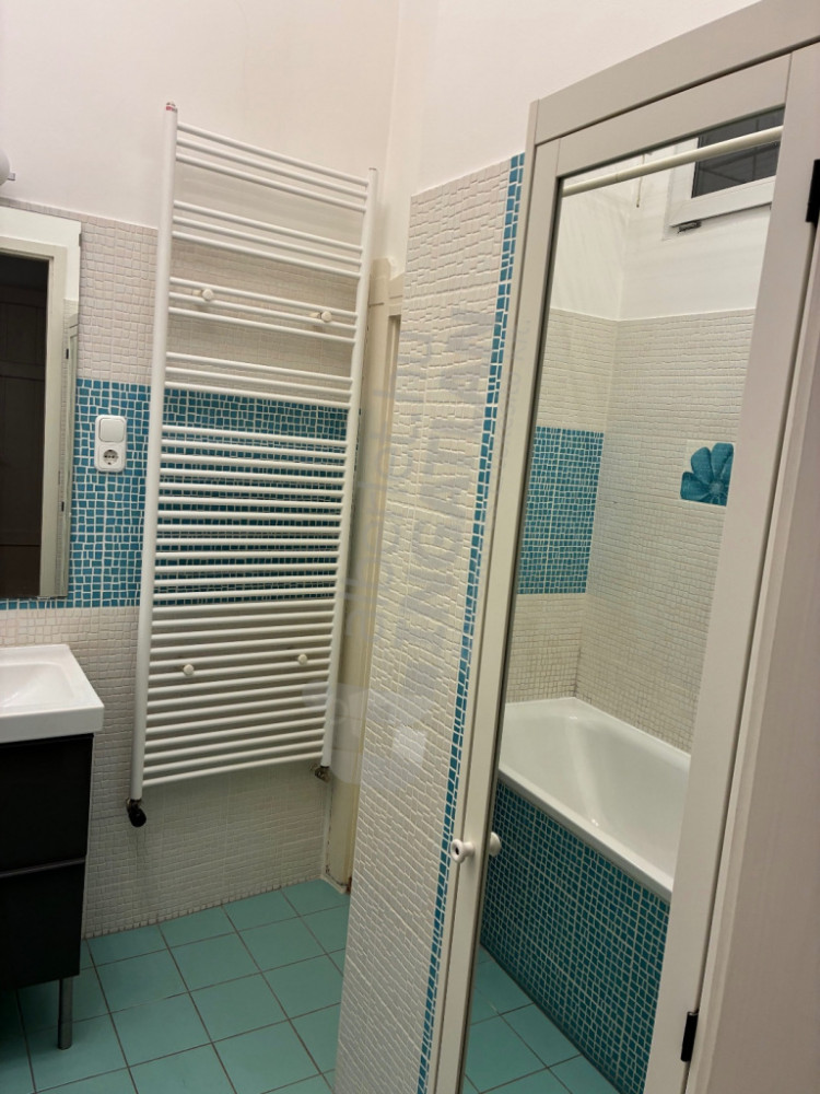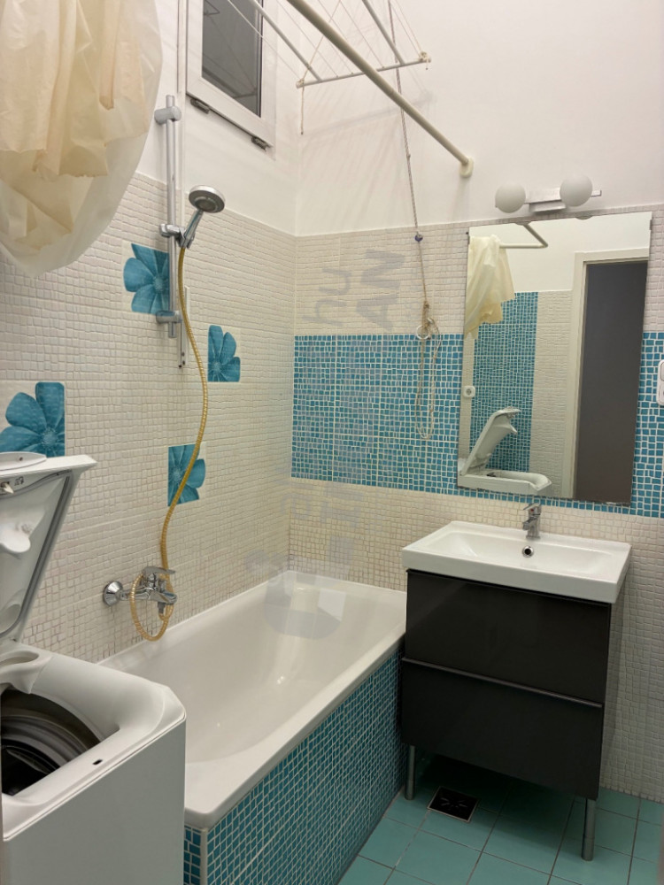 - kádas/zuhanyzós fürdő mosógéppel, beépített szekrénnyel, törölközőszárítós radiátorral