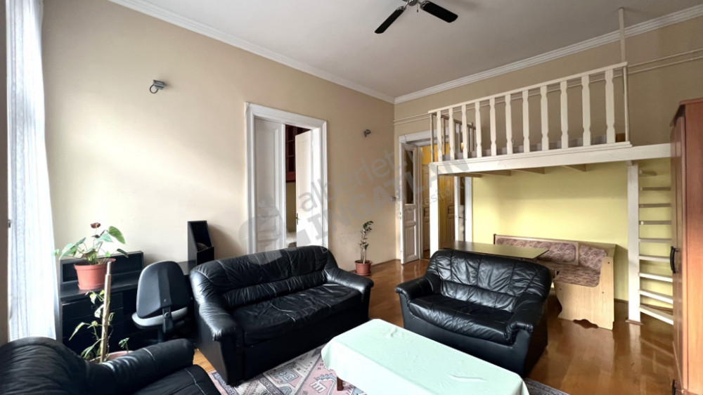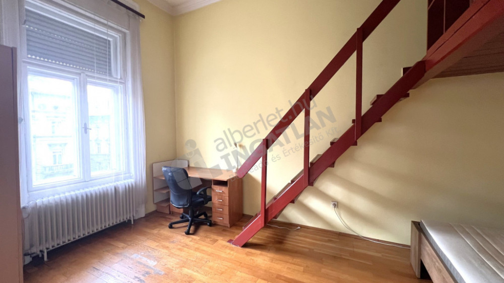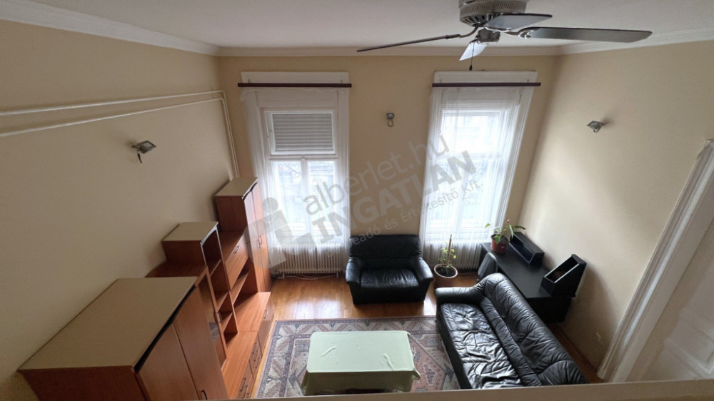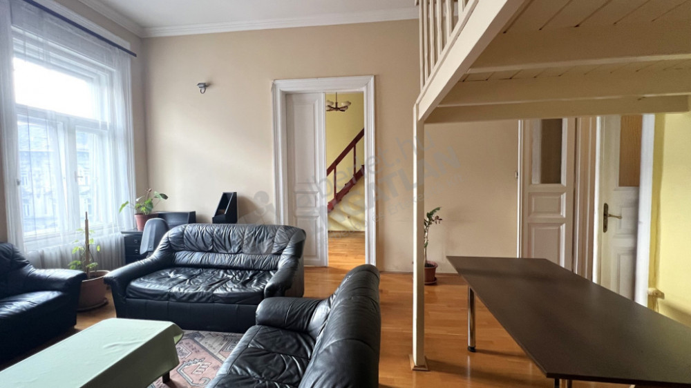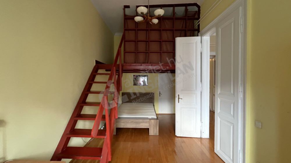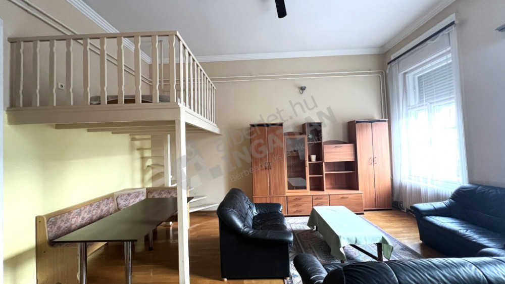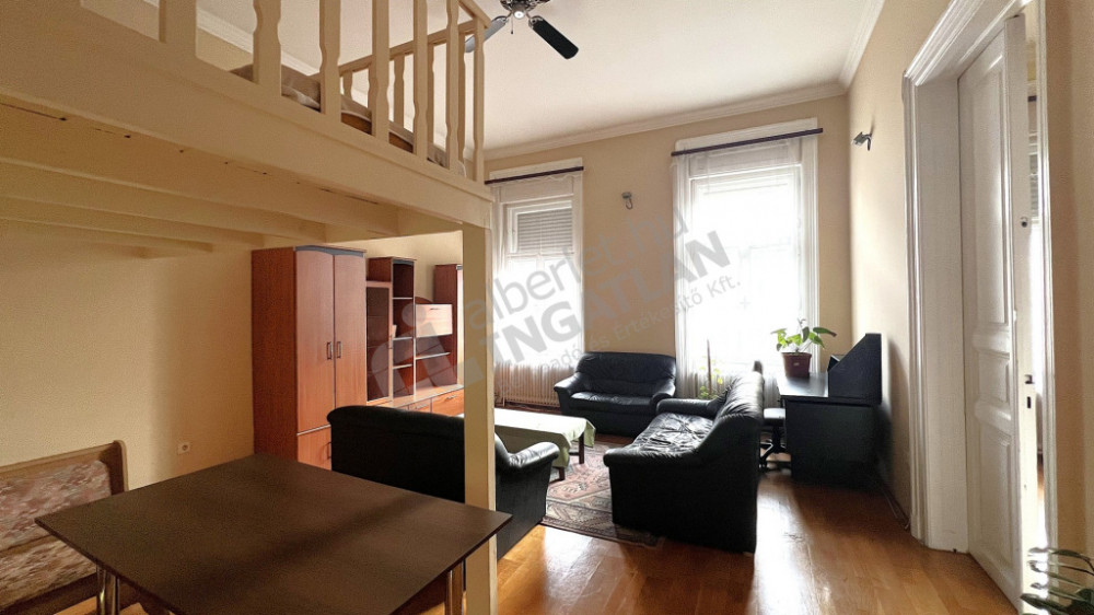 Kiadó az VII. kerületben, egy tégla épületben, a harmadik emeleten, 76 m2-es, 2 szobás, galériázott lakás.