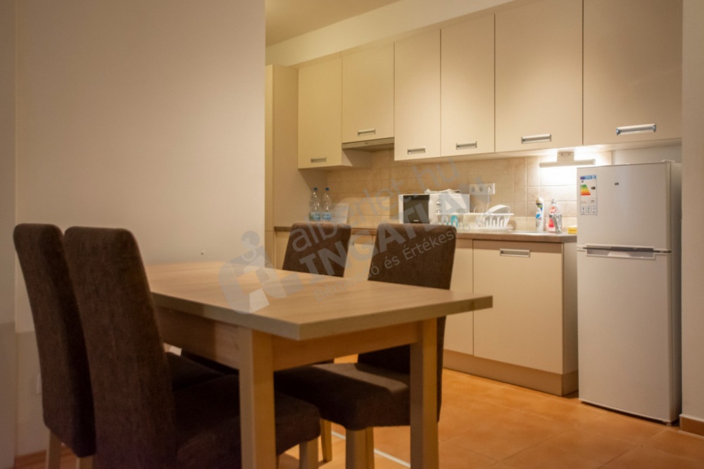 A konyha gépesített: főzőlap, páraelszívó, hűtő–fagyasztó, a lakásban továbbá mosógép, TV és mobil klíma biztosítja a kényelmet. A világos szobák kellemes lakóteret nyújtanak egész évben.