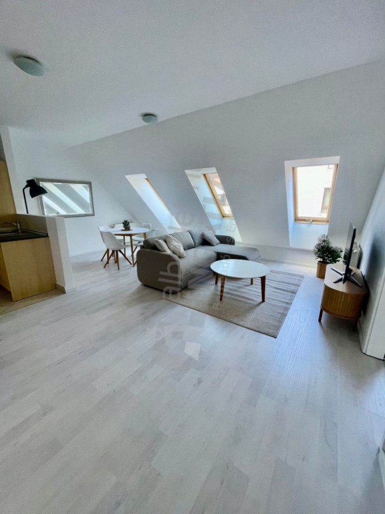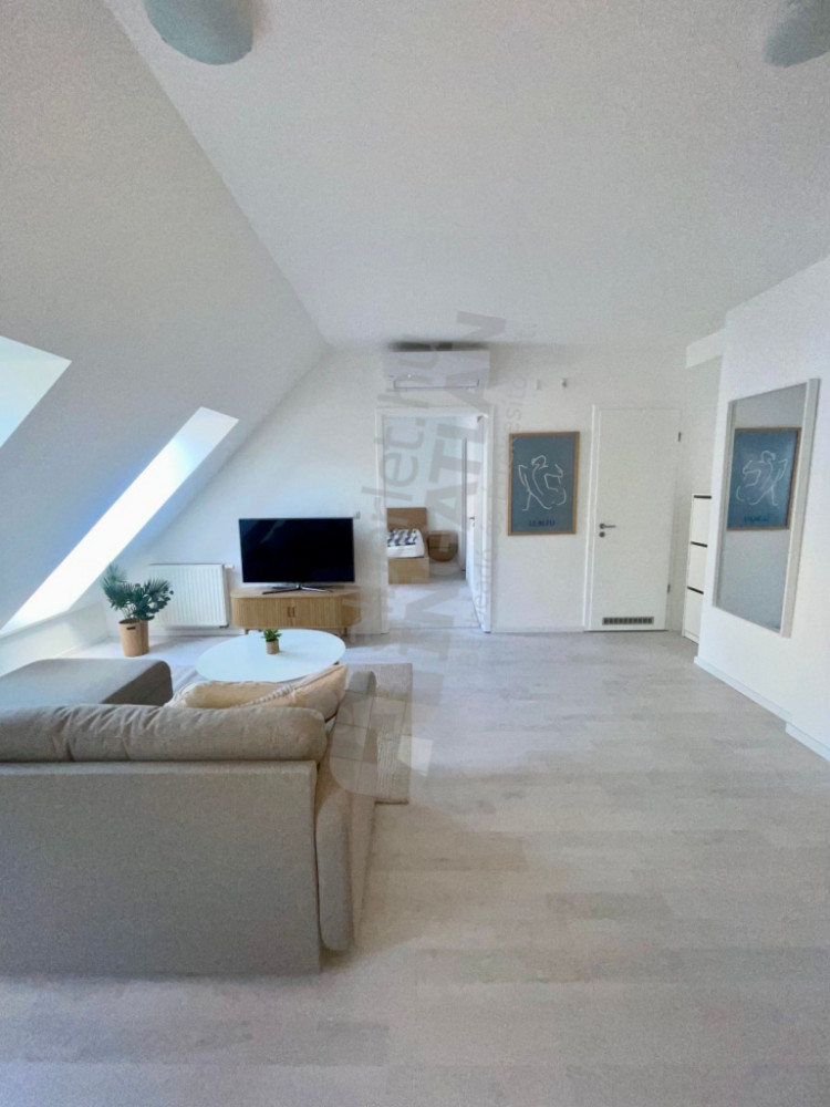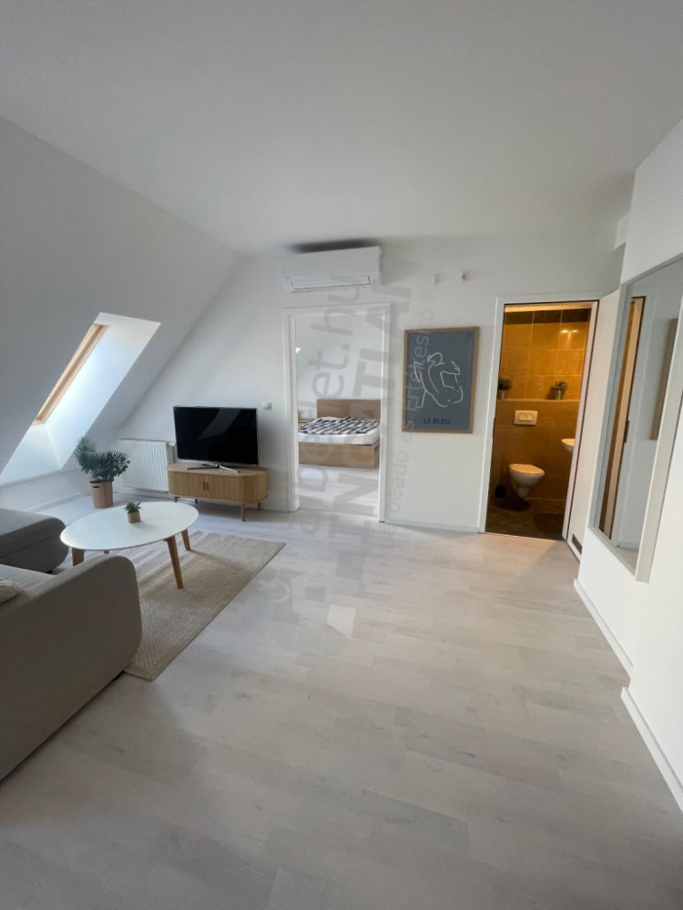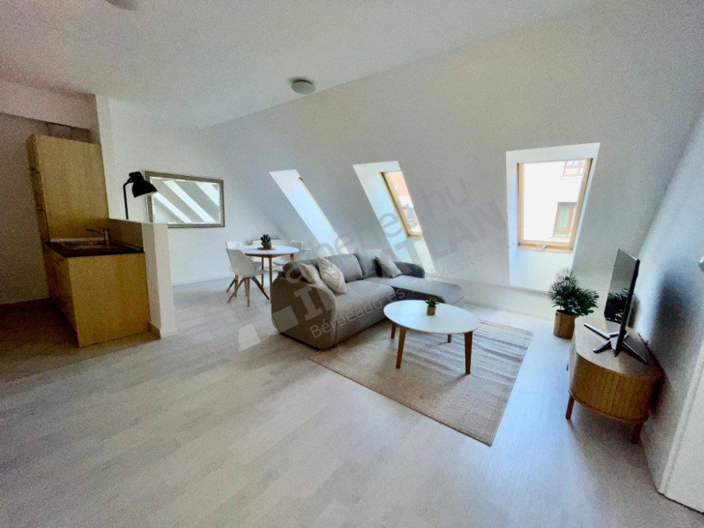 Kiadó VII. kerület Holló utcában, a GOZSDU UDVARBAN, világos, tetőtéri lakás.