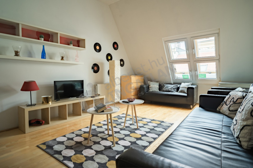 - utca fronti, tetőtéri dupla ablakok, így a lakás sötétebb időben is világos