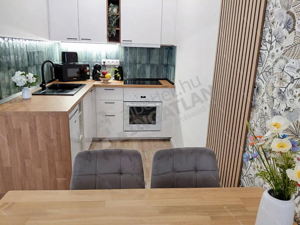 - TELJESEN GÉPESÍTETT KONYHA (sütő, főzőlap, hűtő stb.)