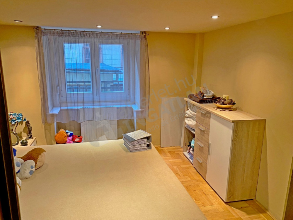A nappali KLÍMÁS( hűtő-fűtő ), további felszereltségek: széf, riasztó, biztonsági ajtó, redőnyök.