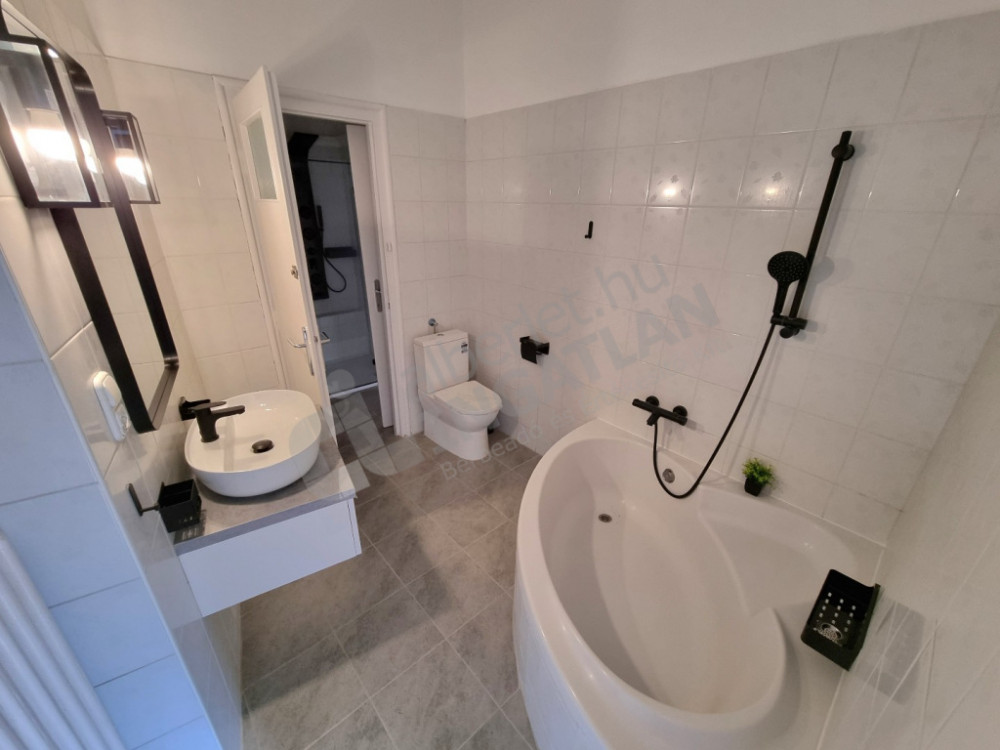 The apartment is east-facing, street-facing, yet quiet, with a high ceiling height of 320 cm, which provides a spacious, bright sense of space. It is equipped with double comfort, two bathrooms and two toilets. The heating and hot water are central, the kitchen has a window and an extractor hood.