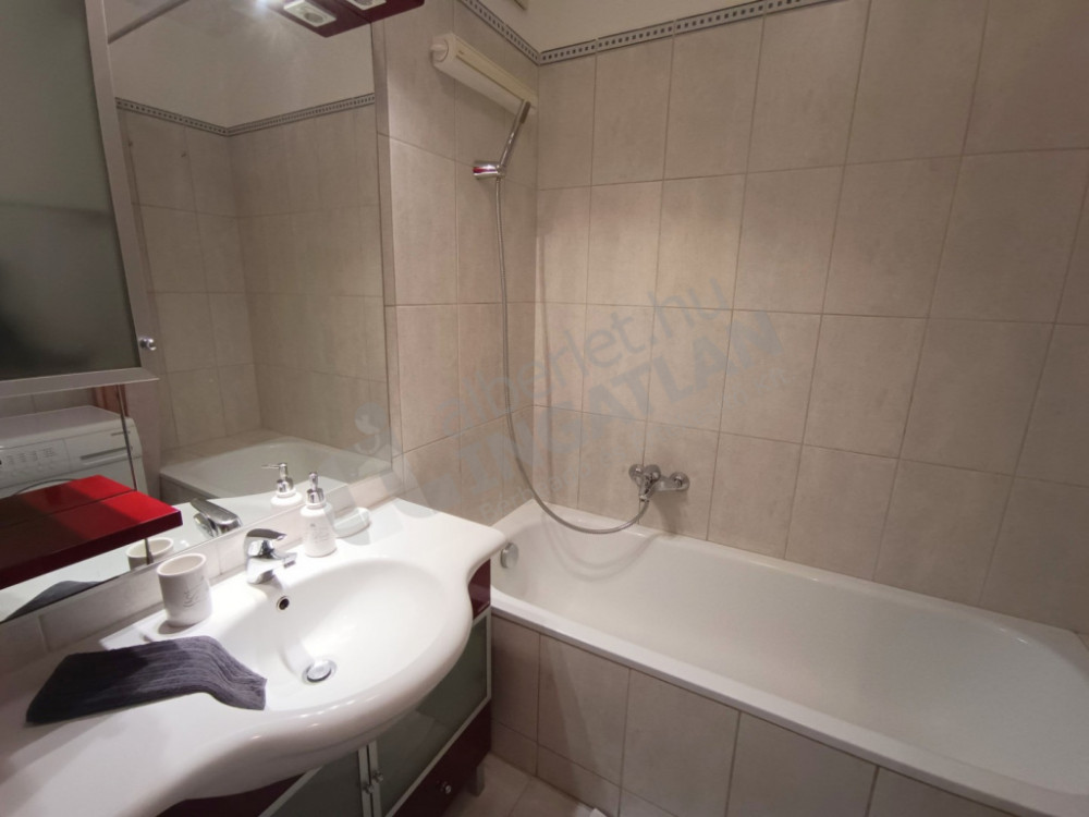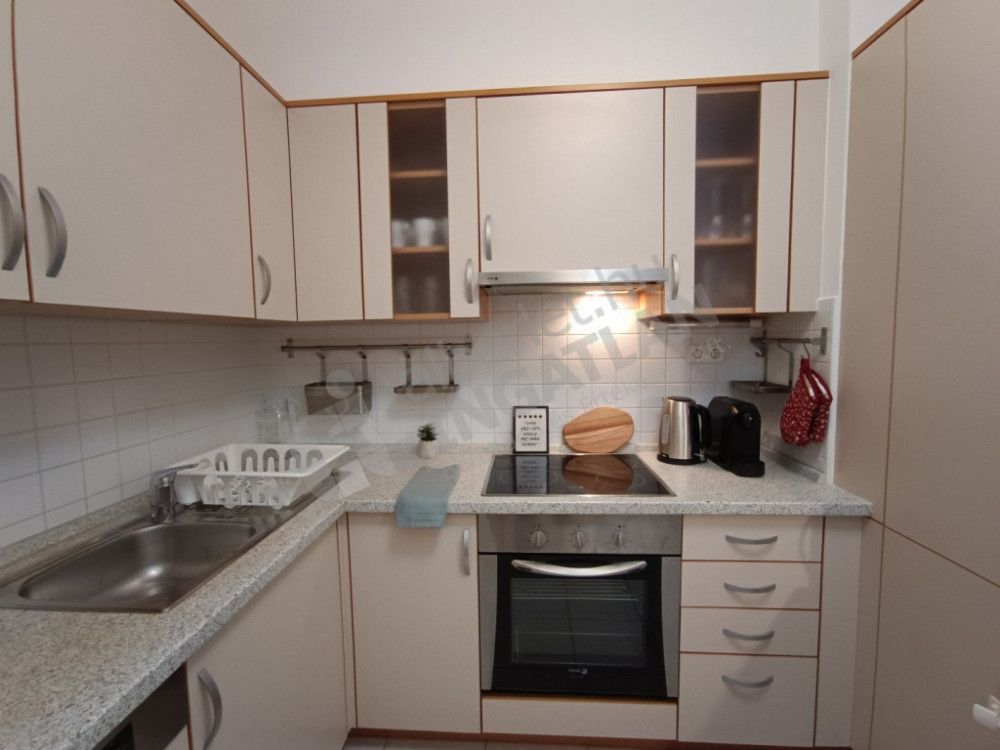 The apartment is fully furnished and mechanized, so it can be moved in immediately. Both bedrooms have comfortable double beds and quality mattresses, while the air-conditioned living room provides cool shelter even on summer days. The bathtub and the separate toilet offer a practical arrangement for everyday life.