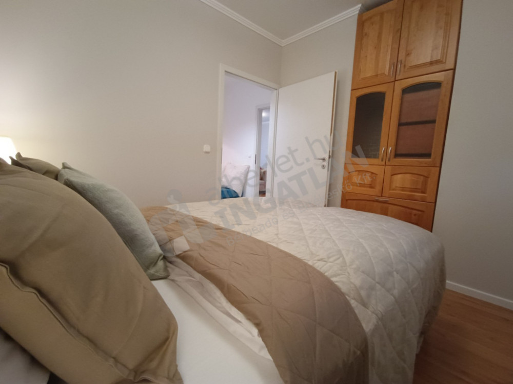 A lakás teljesen bútorozott és gépesített, így azonnal költözhető. Mindkét hálószobában kényelmes franciaágy és minőségi matrac biztosítja a pihenést, míg a klimatizált nappali a nyári napokon is hűs menedéket nyújt. A kádas fürdő és a külön WC praktikus elrendezést kínál a mindennapokhoz.
