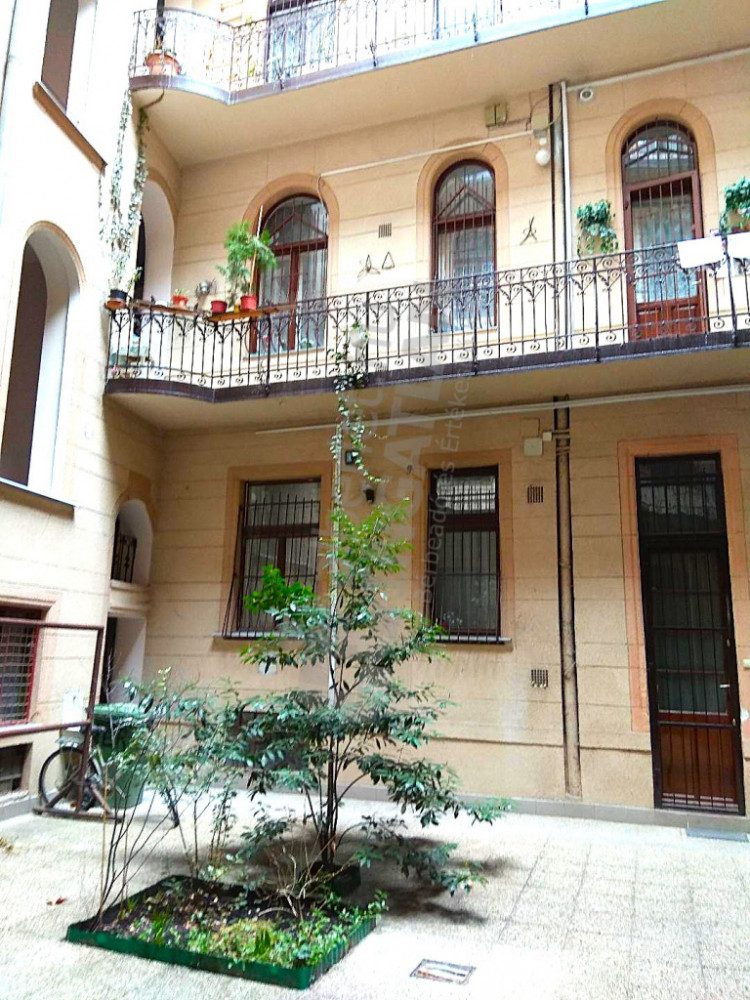 Földszinti közvetlenül zöld belső udvar kapcsolattal. Felújított homlokzatú, lépcsőházú, épület.