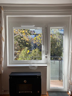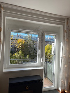 A lakás erkéllyel rendelkezik, a szemközti háztól távol, így privát tér biztosított.