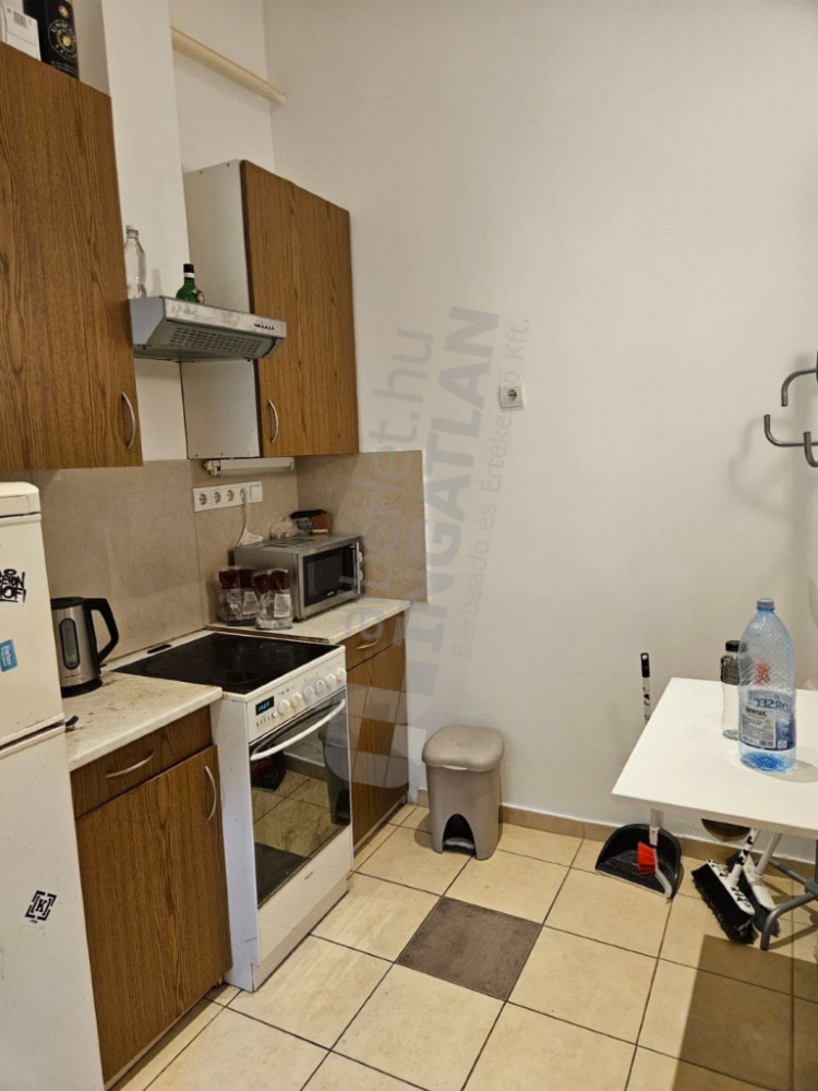 Kiadó egy 32 m²-es, udvari nézetű, mégis világos, berendezett és gépesített garzonlakás Budapest VIII. kerületében, a II. János Pál Pápa tér közvetlen közelében.