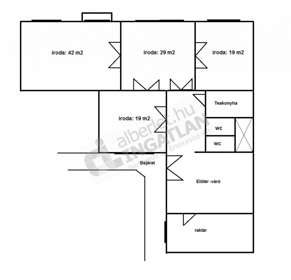 A három nagyobb szoba a körtérre néz, két kisebb, de normál méretű (13 és 19m2) szoba az udvarra.