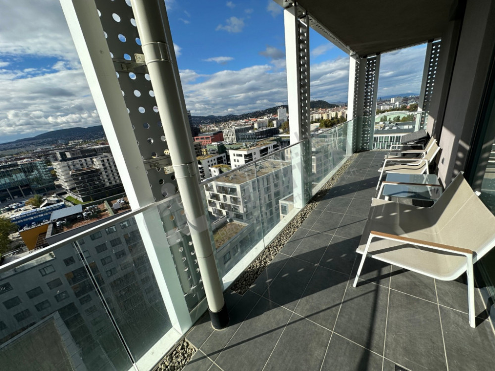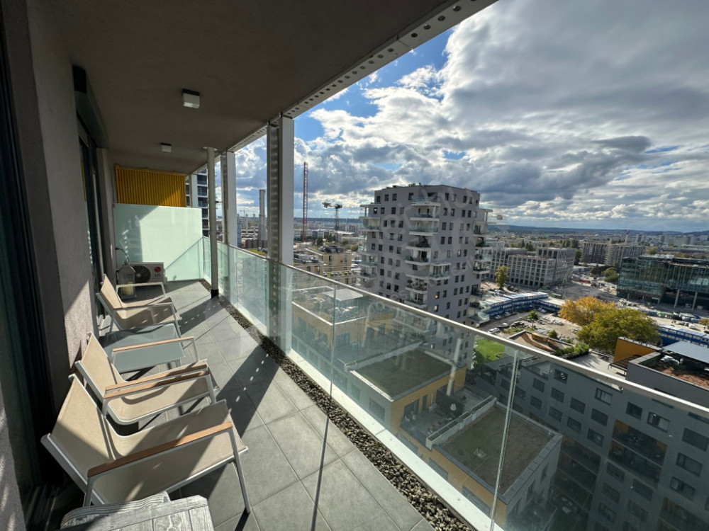 Budapart városrészben, Bíró László József körúton kiadó egy két hálószobás, örökpanorámás luxuslakás.