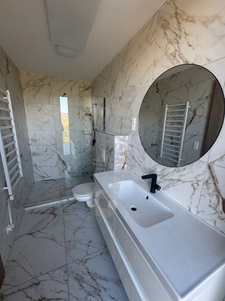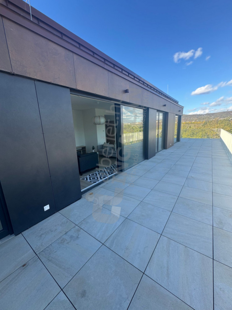 84m2-es lakás, ugyanakkora terasszal. Lenyűgöző panoráma a hegyekre-erdőkre.