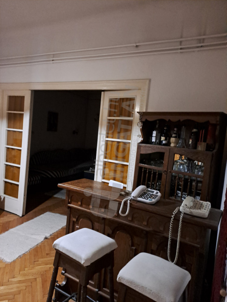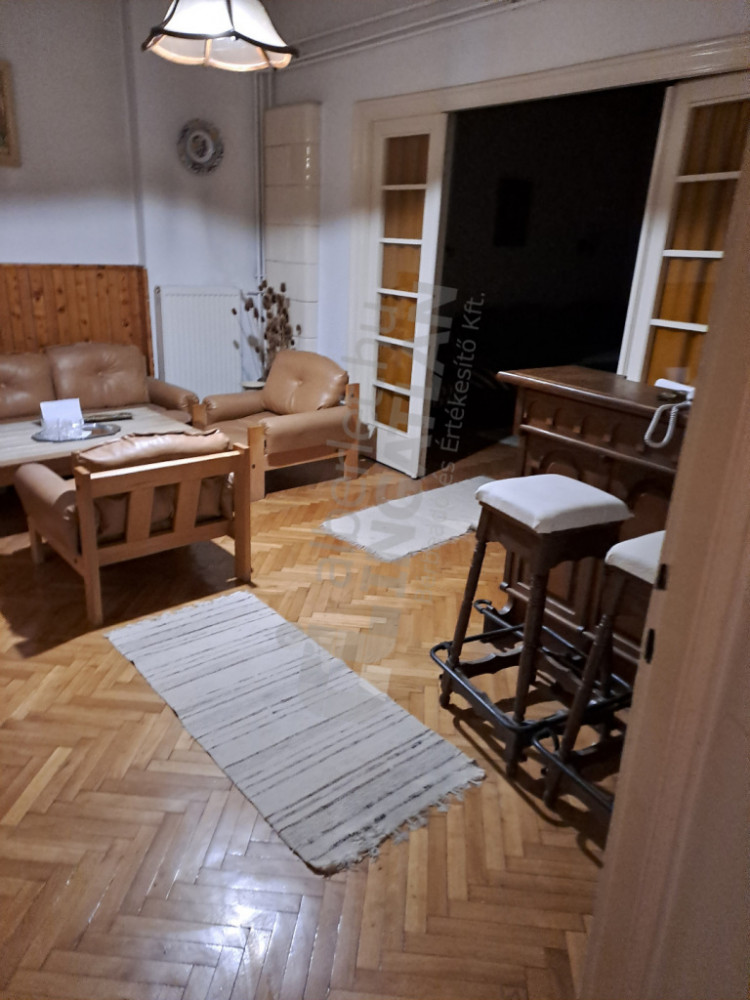 A lakás régi, polgári jellegű, de felújított; a ház is szigetelt és gondozott.