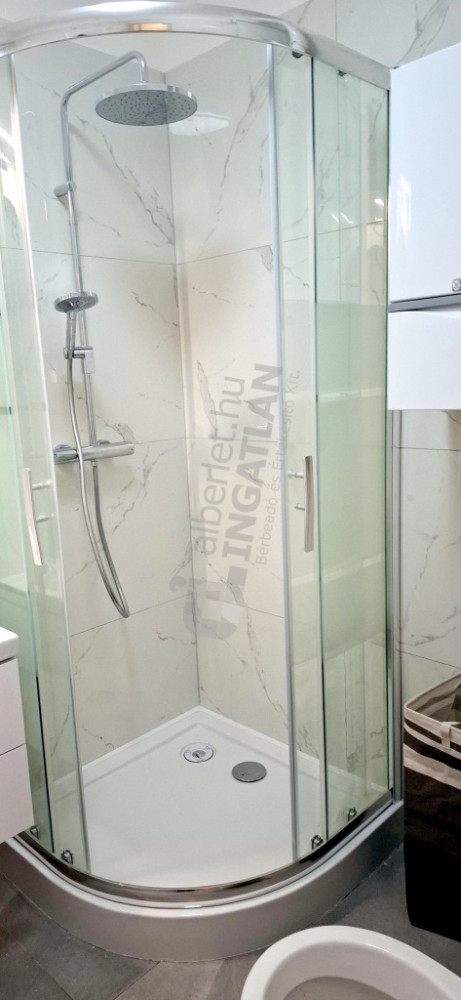 Tusolós fürdőszoba toalettel, plusz külön wc.