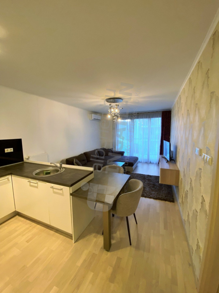 Amerikai konyhás nappali + Hálószoba + Fürdőszoba + Toalett + 12 nm erkély