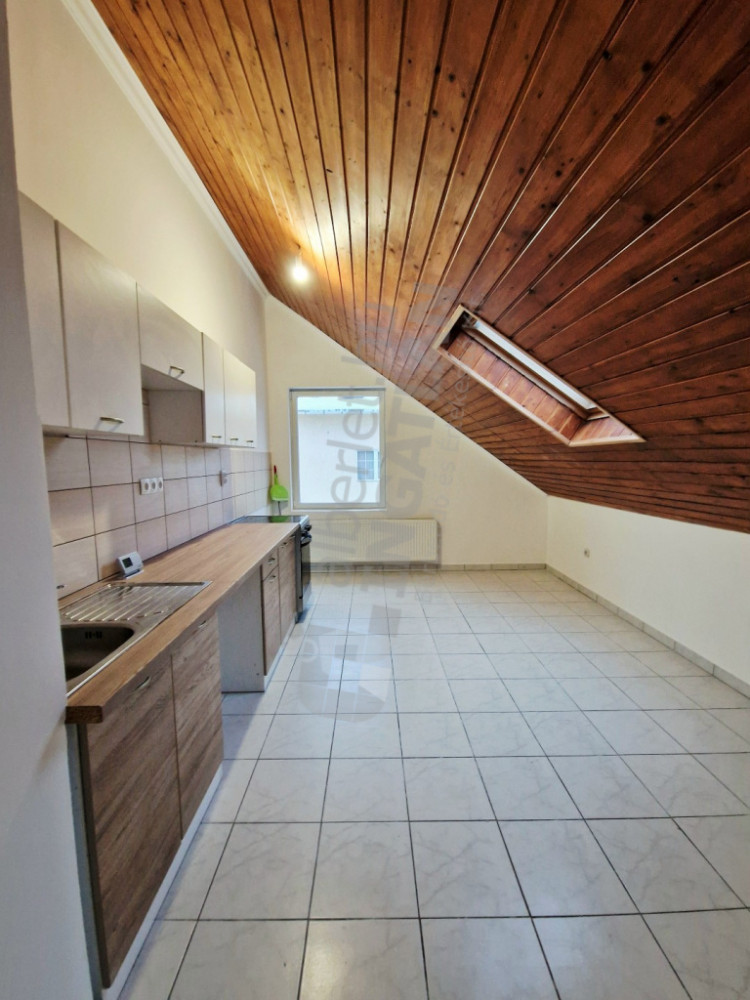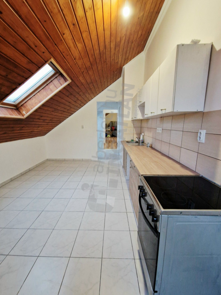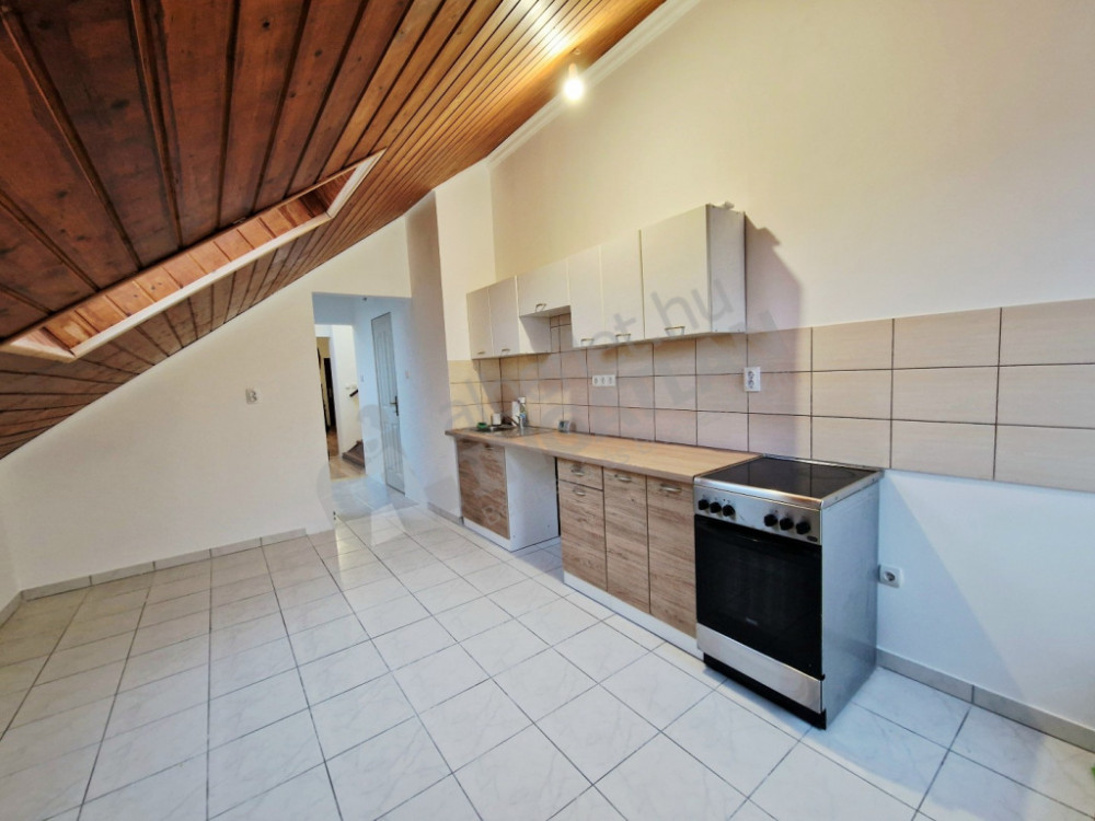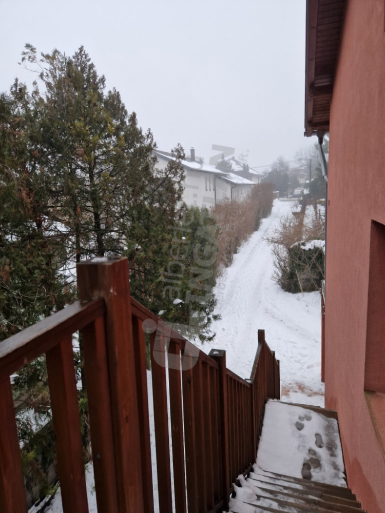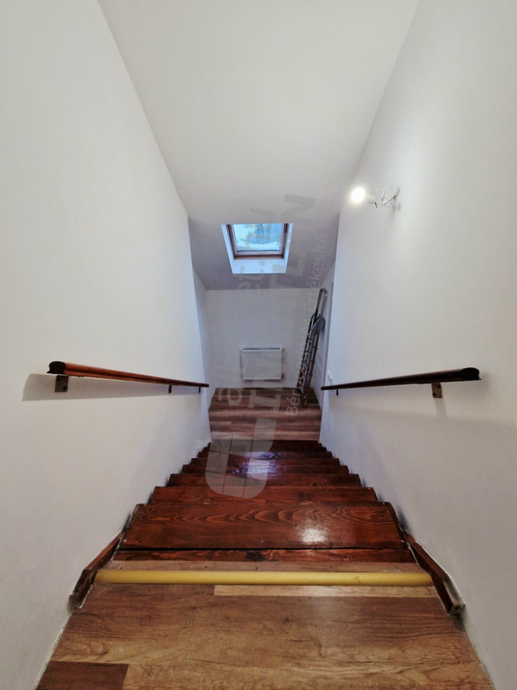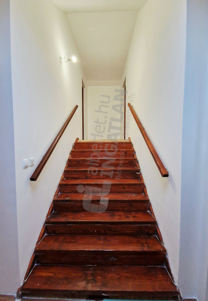 A lakás egy családi ház legfelső szintjén, leválasztva található. Kertből nyíló lépcsőn közelíthető meg.