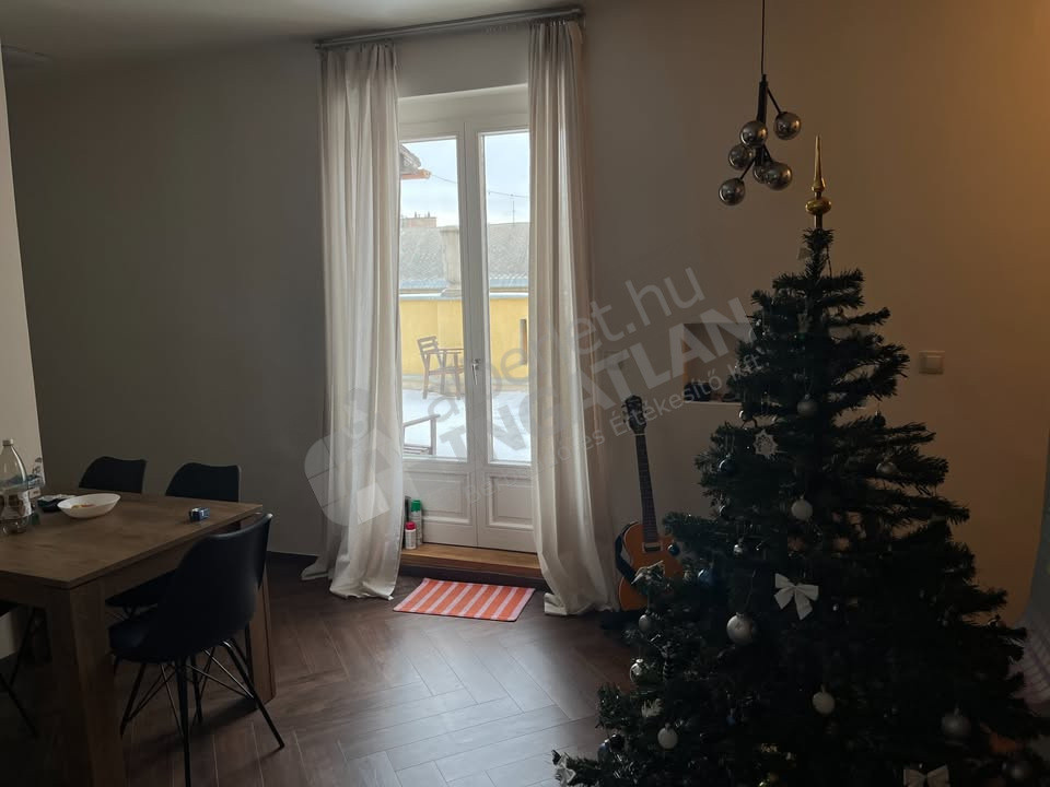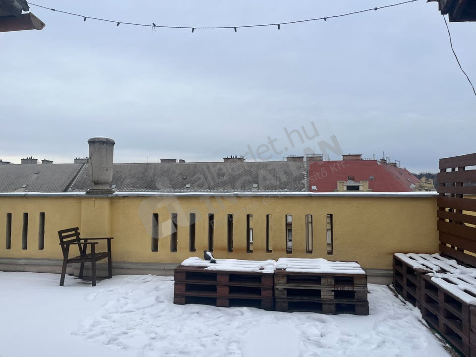 Az ingatlan elosztás: 1 háló szoba, 1 dolgozó szoba, amerikai konyhás nappali, fürdő+wc, tetőtéri terasz.