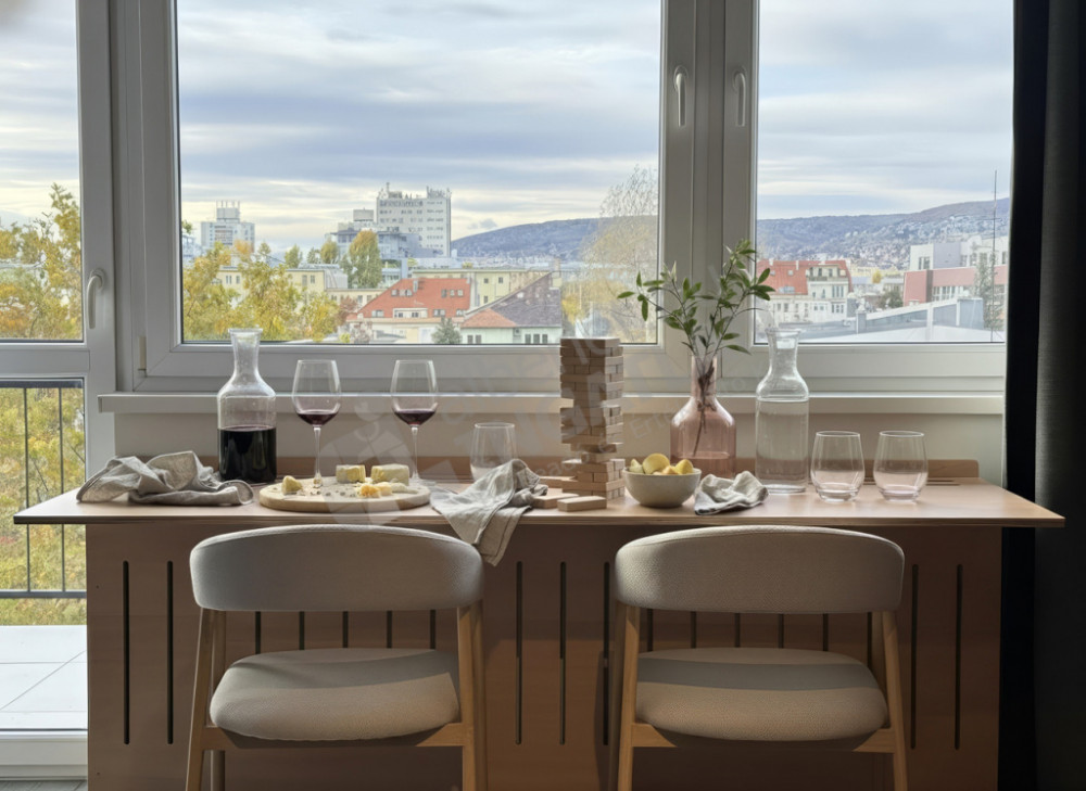 Kiadó panorámás, design lakás a XI. kerületben – zöldövezet és belvárosi közelség tökéletes egyensúlyában