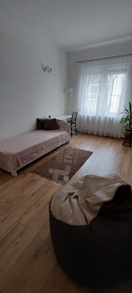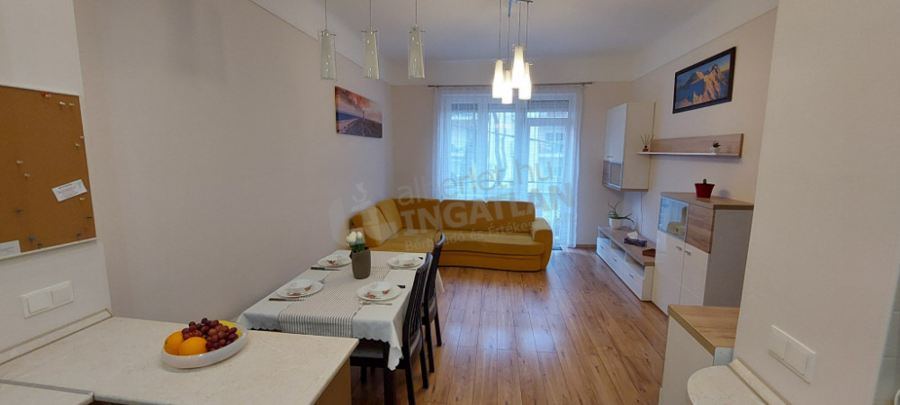 Elrendezése praktikus: amerikai konyhás nappali étkezőrésszel, három külön bejáratú szoba, valamint egy fürdőszoba áll rendelkezésre. A lakás frissen festett, bútorozott állapotban kiadó.