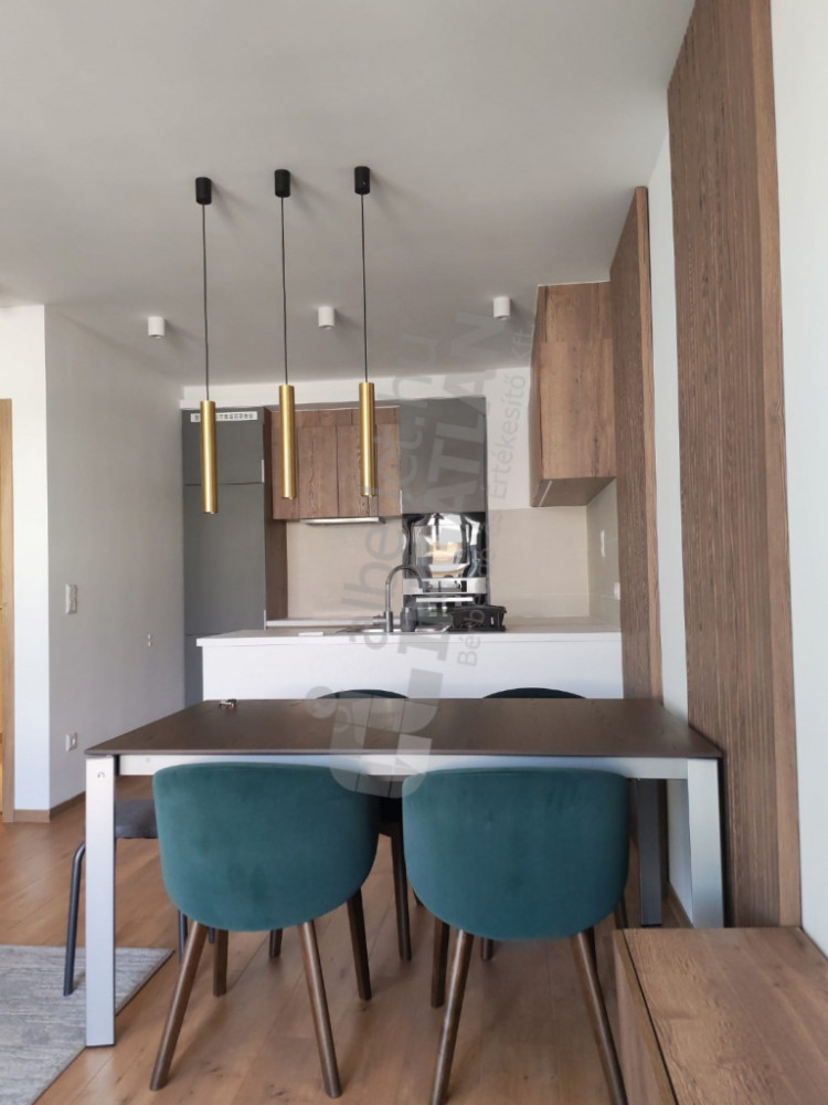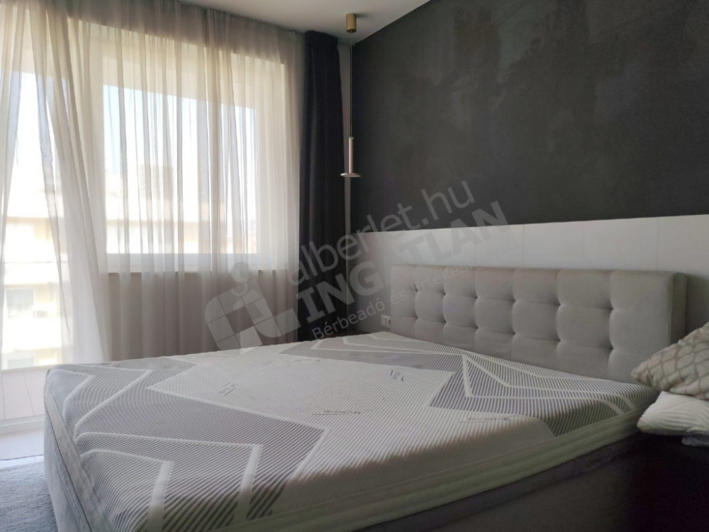 In one of the most popular parked areas of Budapest's 11th district, in Vahot Street, a newly built, elegant, fully furnished apartment is available for rent, located on the 9th floor of the building. The property has a modern design, is equipped with high-quality appliances and Miele home appliances, making it an ideal choice for those looking for a premium home that can be moved in immediately.