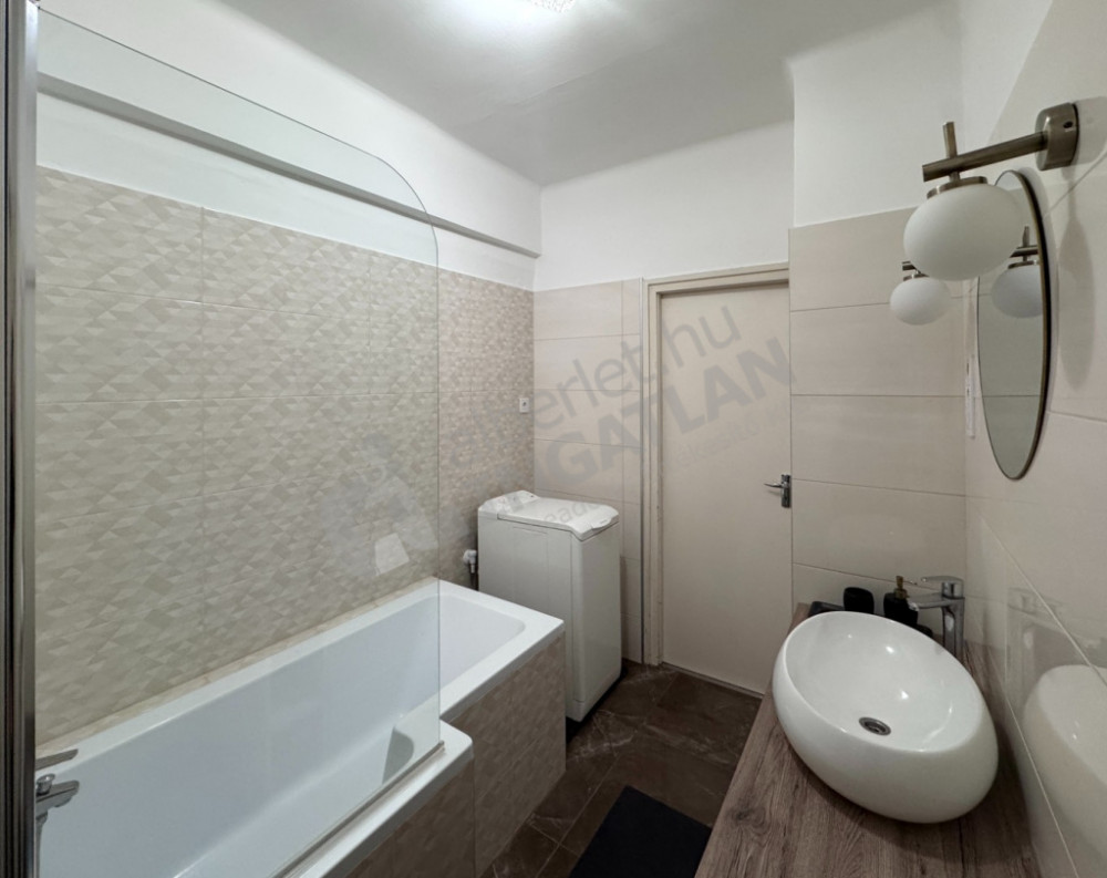 - KÁDas fürdőszoba egy felültöltős mosógéppel - a hálószoba és a nappali felől is megközelíthető