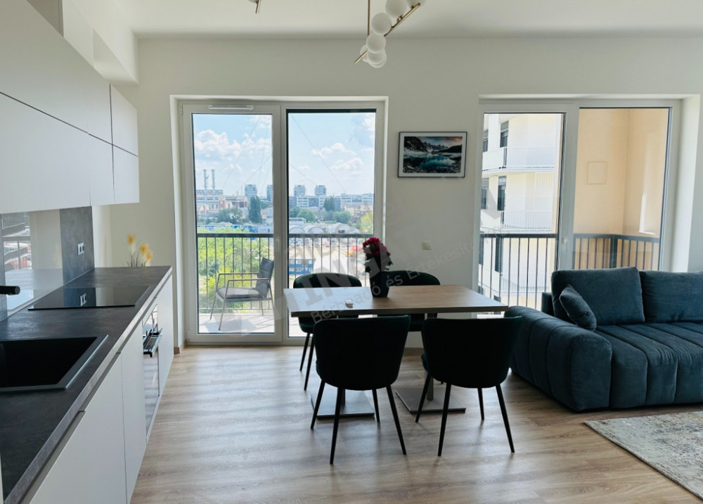 Budapart egyik legújabb, 2023-ban átadott épületében kínálunk bérlésre egy magas emeleti, teraszos lakást, amely a modern városi élet és a természet közelségének ritka egyensúlyát teremti meg.