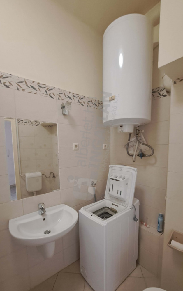 - 5 nm-es fürdőszoba zuhanyzóval, mosdóval és WC-vel, mosógéppel