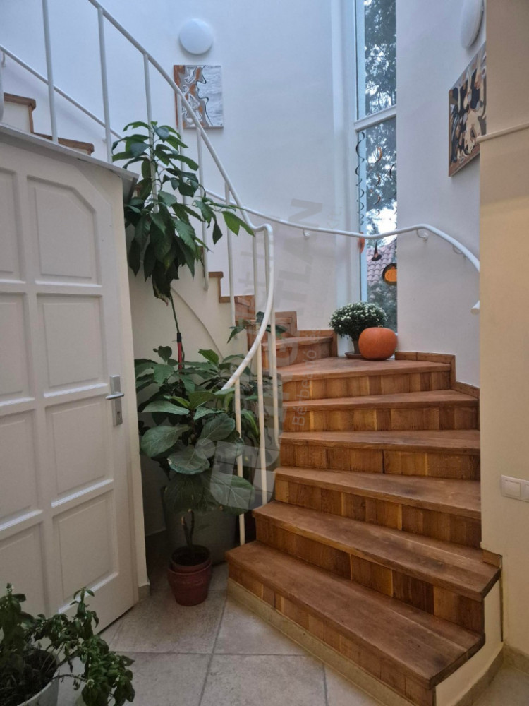 Belső kétszintes, az alsó szinten három külön nyíló hálószoba, a második szint 40m2-es, egy légterű galéria jellegű tágas, világos szoba.