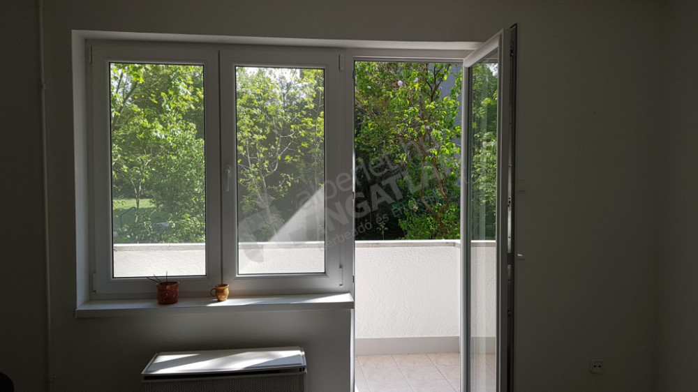 CSENDES és ZÖLD KÖRNYEZETBEN, egy kis társasházban kiadó egy világos két szobás, részben bútorozott, GÉPESÍTETT ERKÉLYES KISÁLLATBARÁT lakás.