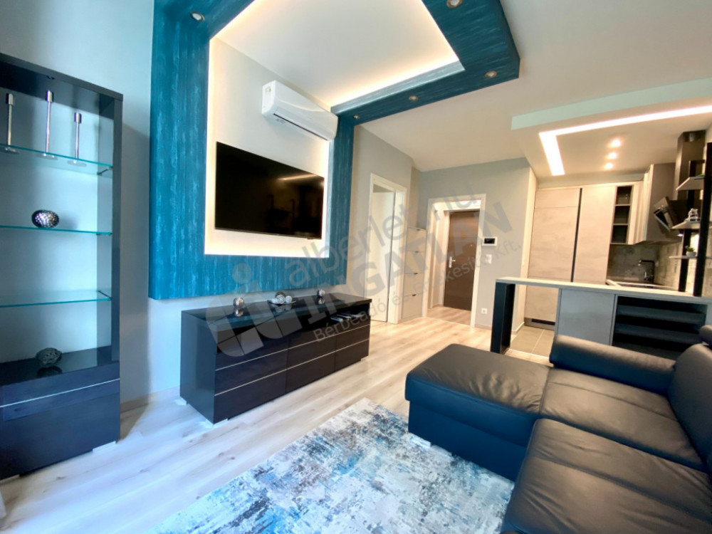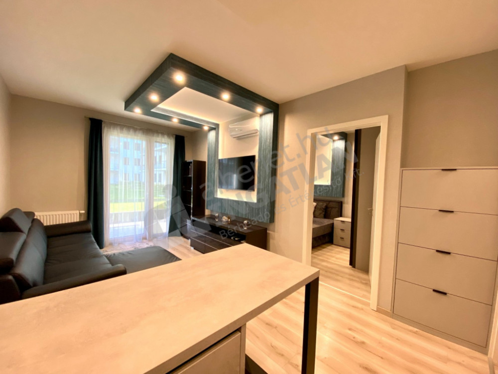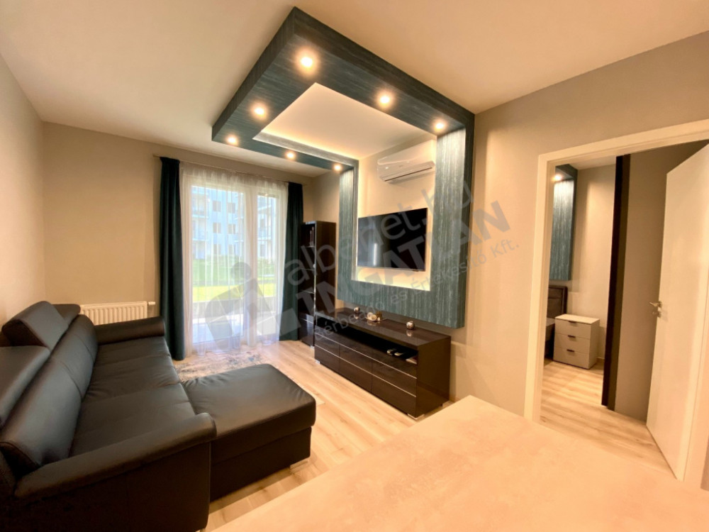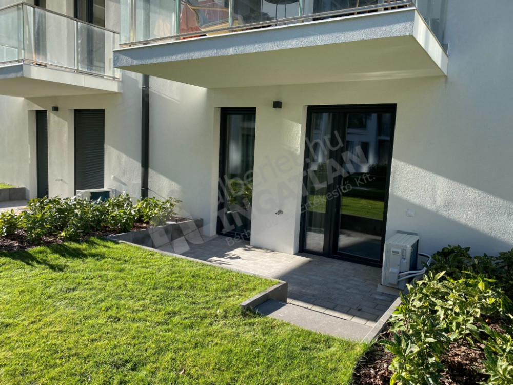 A lakás praktikus elosztású, két különnyíló szobával rendelkezik, így ideális akár pároknak vagy külön dolgozó bérlőknek is. A nappalihoz kapcsolódó 10 m²-es saját kertrész pihenőteret biztosít. Az amerikai konyhás nappali modern, teljesen gépesített és berendezett, a lakás állapota kifogástalan.